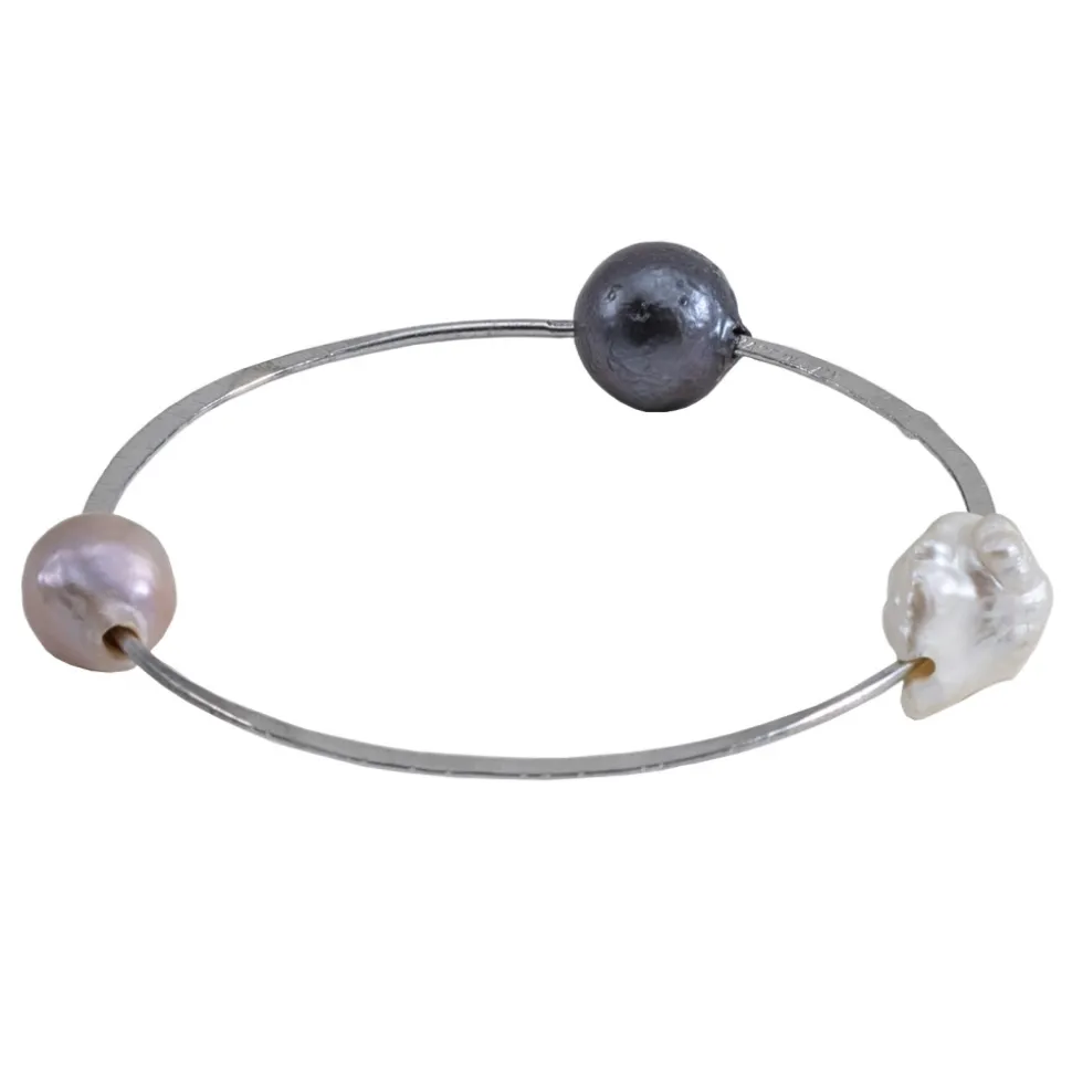 Ab Ove – Bracelet in Silver with Three River Baroque Pearls – Venus Collection – Handcrafted Bracelet – High Quality Luxury