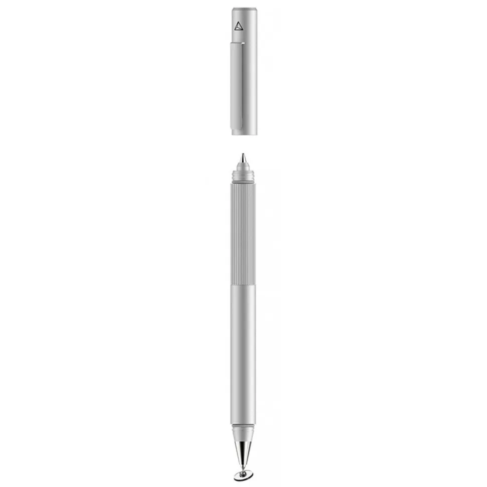 A precision stylus with a ballpoint pen for writing and drawing on tablet or paper.