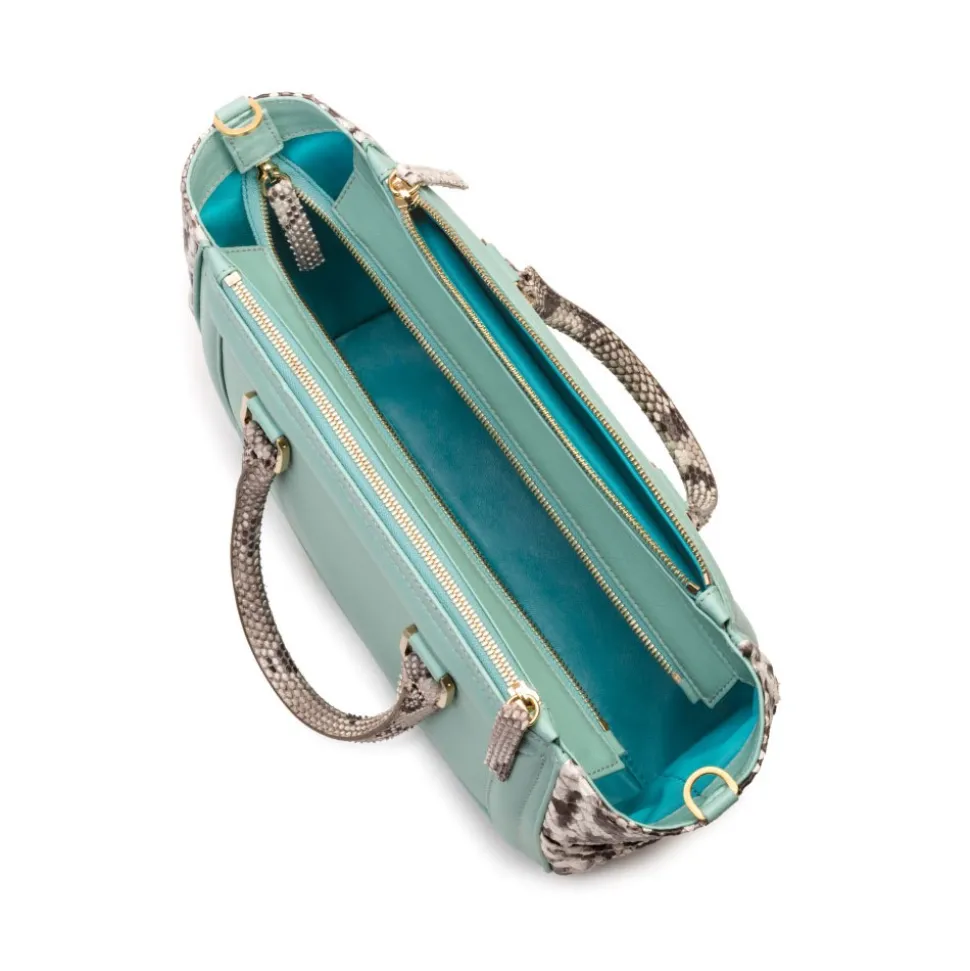 The iconic handbag by Badura exuding femininity and elegance is none the other than the “LadyLike”. This wear-as-you-like handbag comes with a removable strap for a hands-free hold. Multiple zip compartments allow you to hide all of your personal treasures and the supple richelieu calfskin and lizard adds the finishing touch for an everlasting piece.