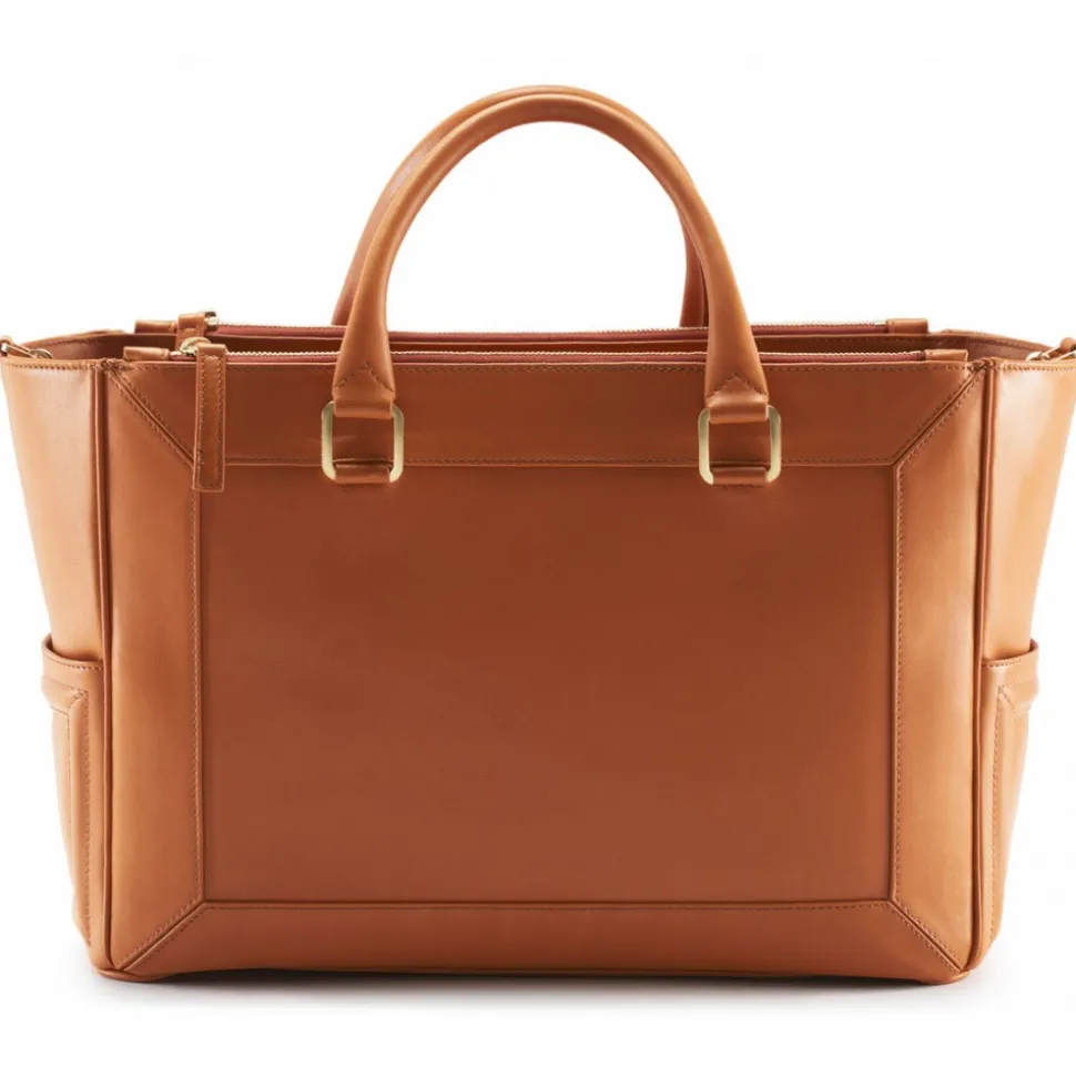 A roomier version from the signature LadyLike collection that combines beauty with incredibly practical features. This LadyLike M boasts a smooth onyx calfskin. Flaunting an even more spacious interior, this style is perfect to carry work documents or weekend items. Featuring a magnetic flap closure and equipped with large side pockets to make sure all of your favorite things are zipped away. Attach the convenient leather and chain strap to wear on the shoulder or cross body for the woman on-the-go.