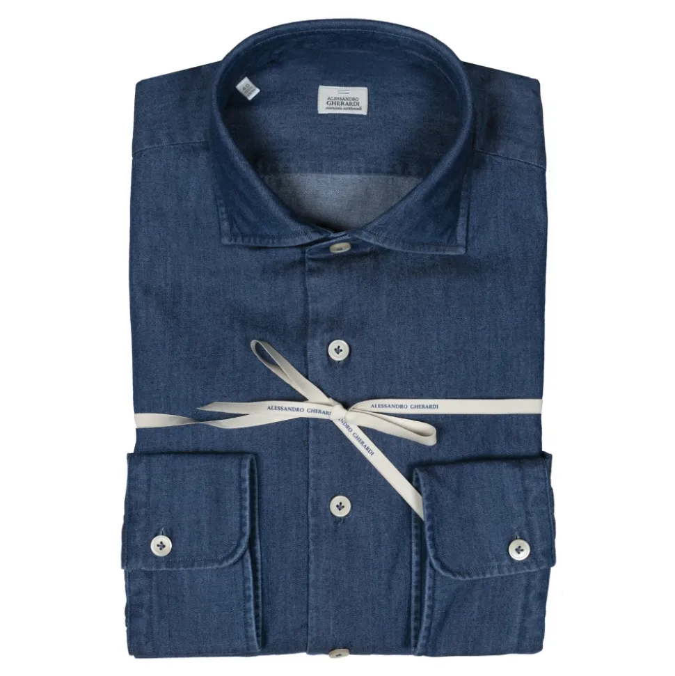 Alessandro Gherardi – Long Sleeve Shirt – Dark Denim – Shirt – Handmade in Italy – Luxury Exclusive Collection