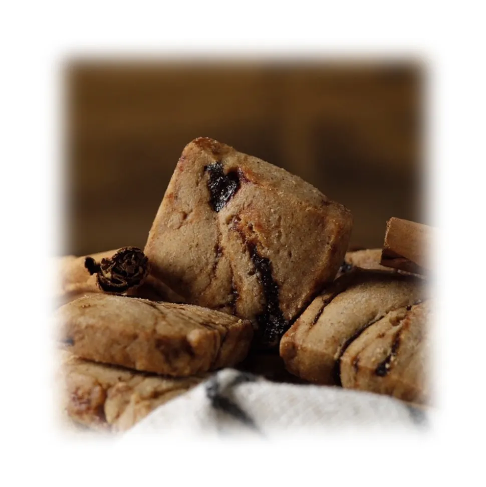 Shortbread biscuits with cinnamon and dried plums, with an unmistakable aroma and flavor.