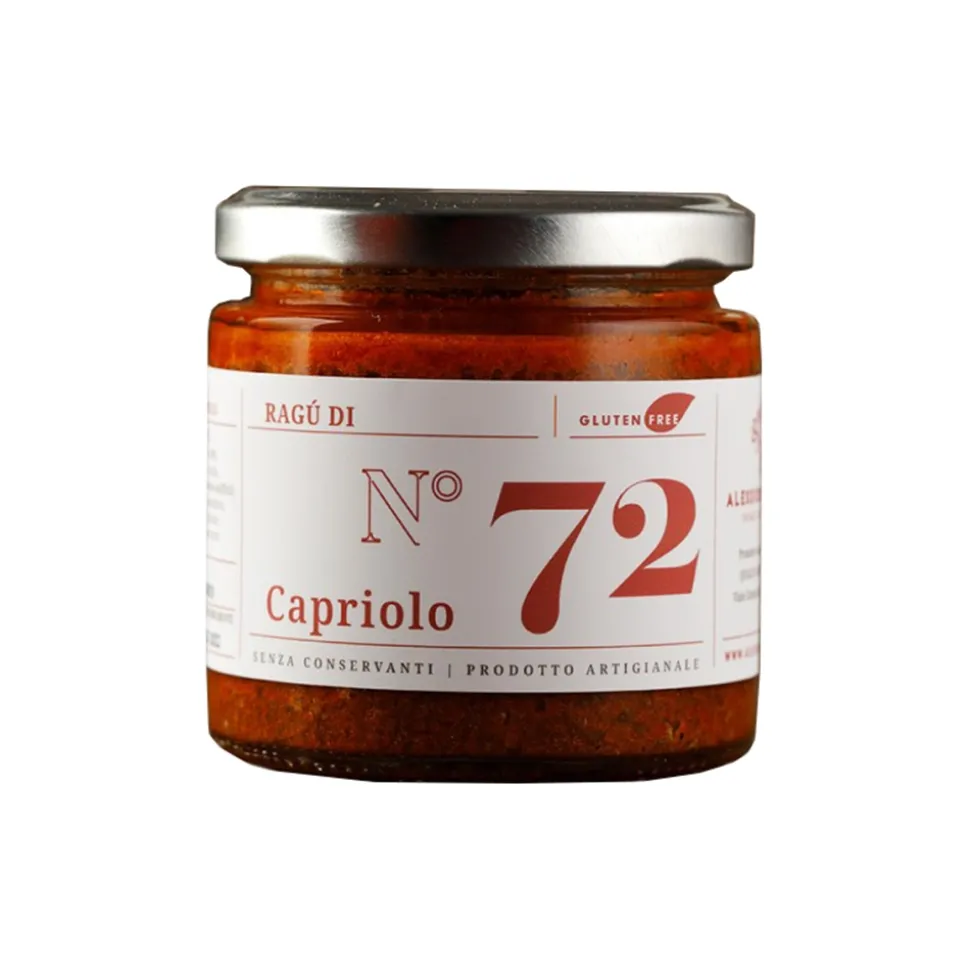 Product with only cuts of wild venison.This sauce goes very well with the local spatzlen or simply with polenta and matured alpine cheese. All the sauce is handmade and totally free of preservatives. We use meat with natural feeds, often grazing or even wild(as in the case of red deer and venison) and we work according to tradition.