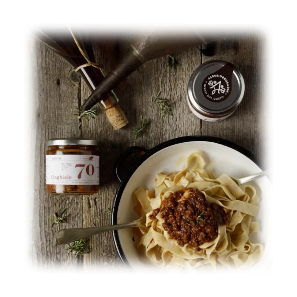 Product with the best wild boar meat. This sauce is perfect for egg tagliatelle or pappardelle and egg pasta in general.