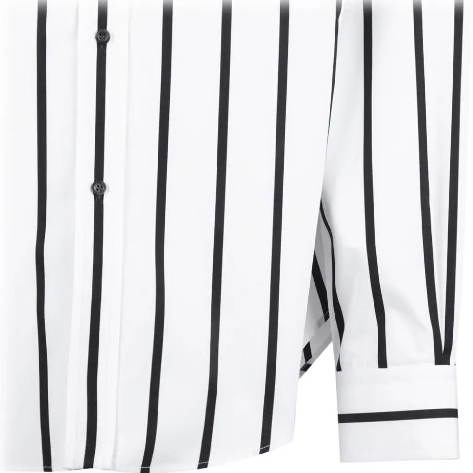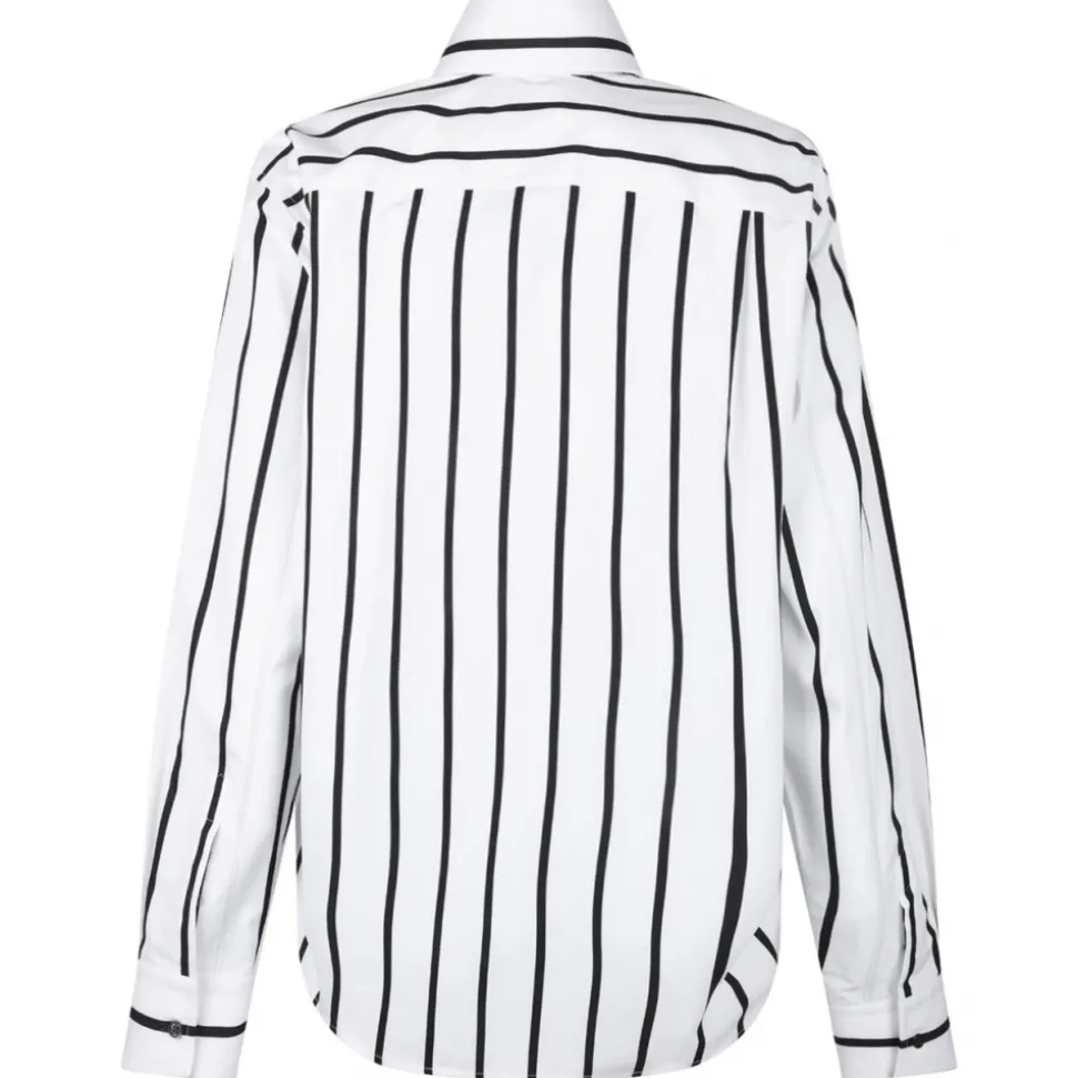 Alexander McQueen Skull Striped Shirt. White and black cotton shirt, front button fastening, long sleeves, buttoned cuffs, curved hem.