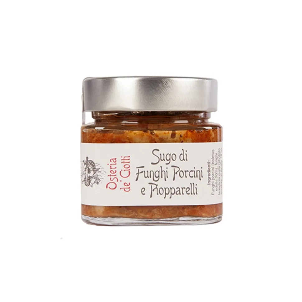 Ingredients: Porcini mushrooms (Boletus edulis (20%), piopparelli mushrooms (Pholiota nameko mutabilis (20%) organic tomato (28%), extra virgin olive oil (18%), onion (6%), garlic, parsley, thyme, white wine (contains sulfites), salt and pepper.