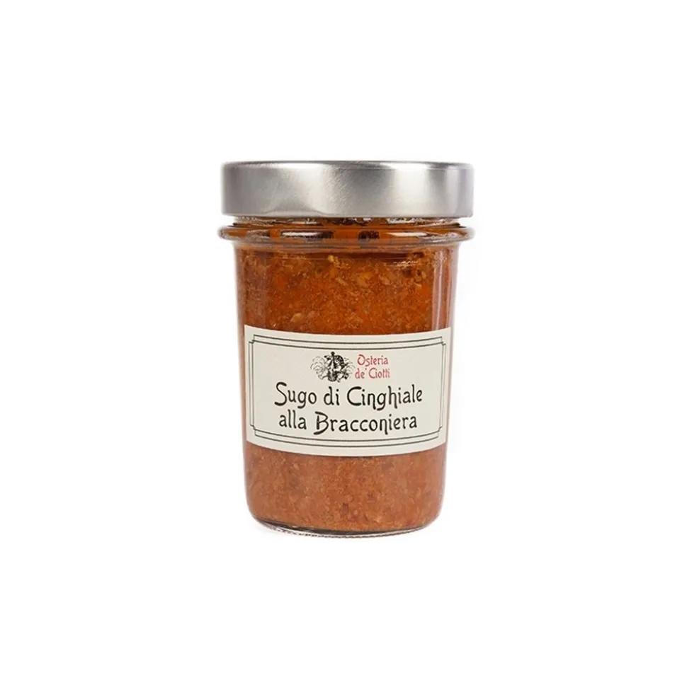 Ingredients: Wild boar meat (38%), organic tomato (28%), italian extra virgin olive oil (10%), onions (7%), carrots (7%), celery (7%), red wine (contain sulfites), garlic, juniper , bay leaf, salt and pepper.