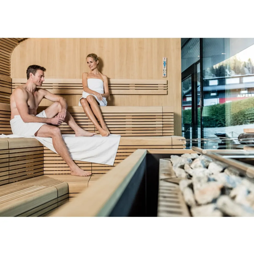 To ensure sufficient space and an exclusive private dimension, the use of the entire wellness area and the Beauty zone is reserved exclusively for guests of the Alpenroyal hotel.