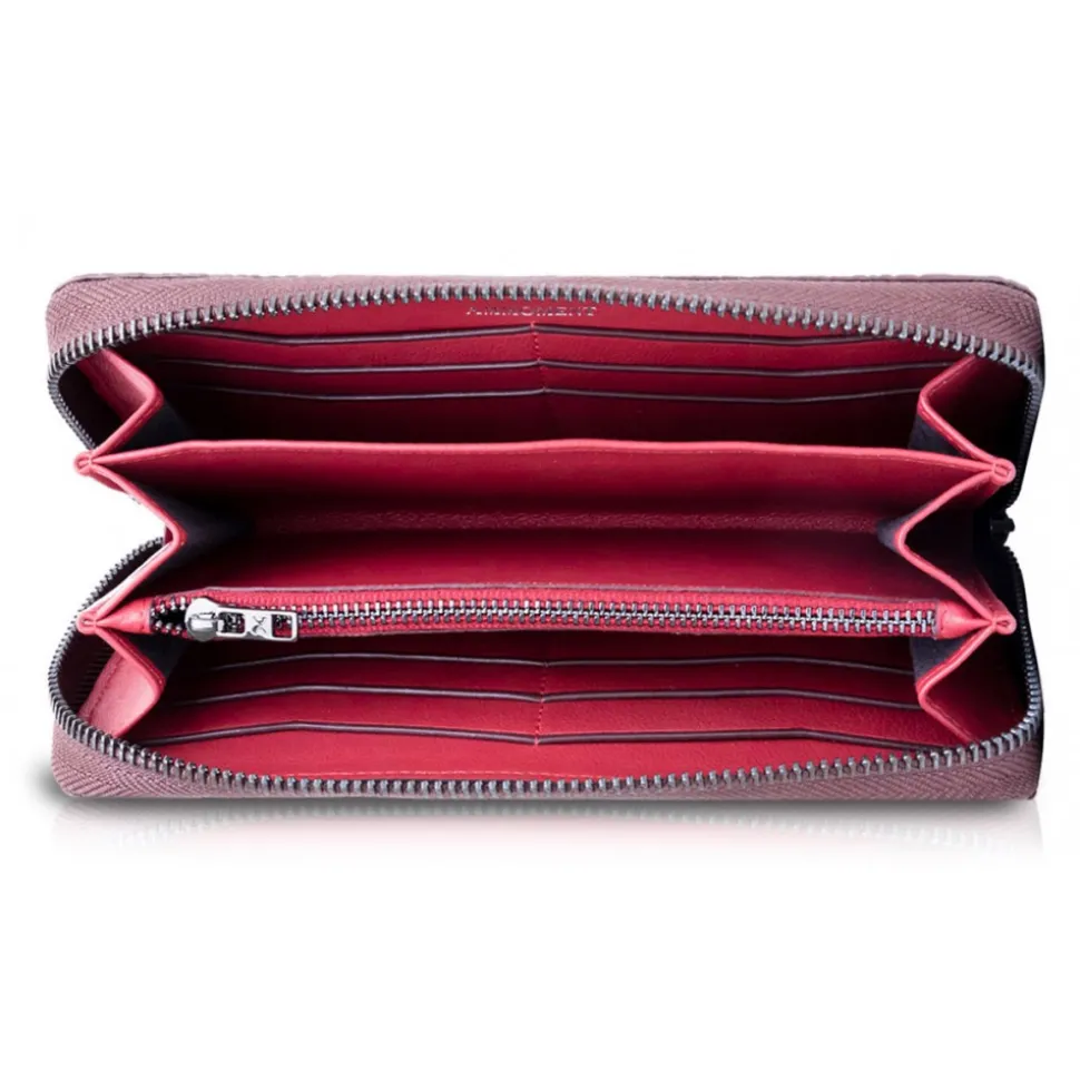 Handmade long zipper wallet in caiman and cowhide leather lining made in Italy.