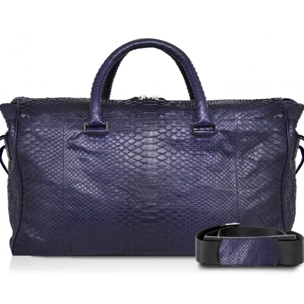 Lark Weekender Large Leather Bag in Python – Navy