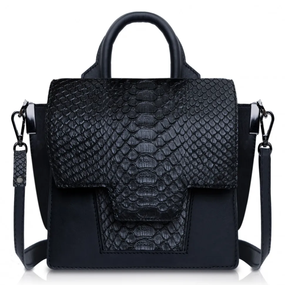 Handmade leather Lexi crossbody bag in python and cowhide leather lining made in Italy.