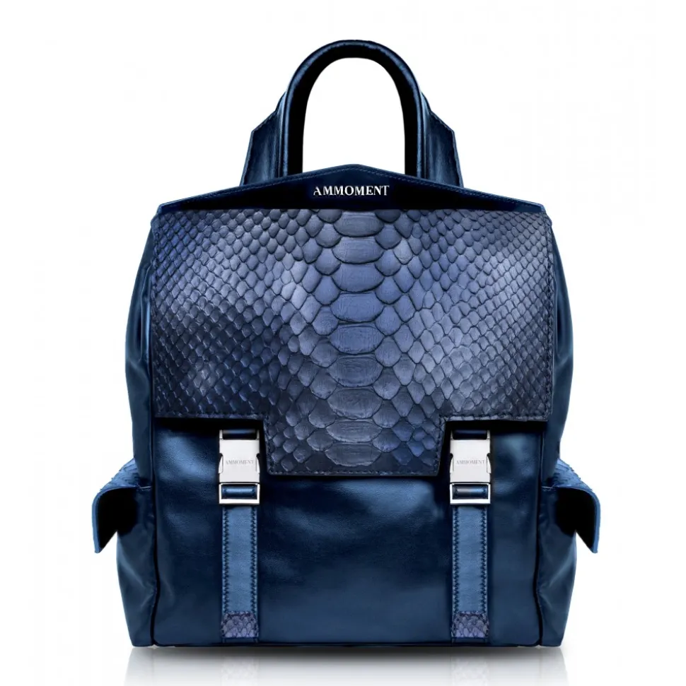 Handmade leather Zane small backpack in python and cowhide leather lining made in Italy.