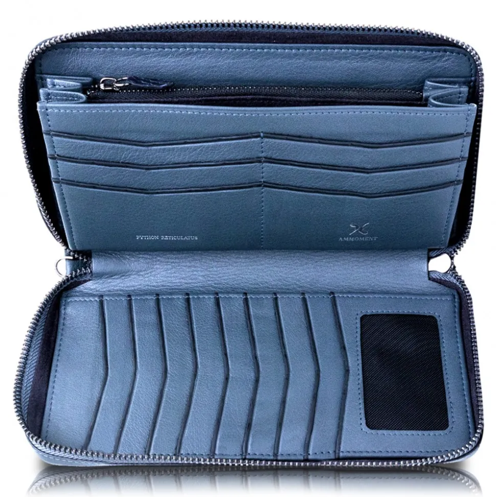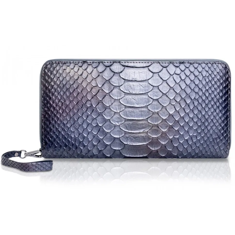 Handmade large long zipper wallet in python and cowhide leather lining made in Italy.