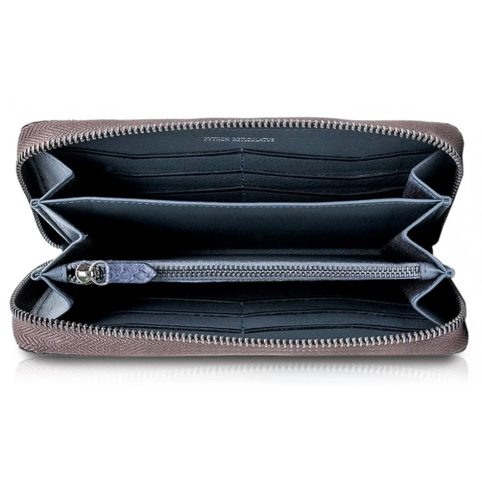 Ammoment – Python in Calcite Grey – Leather Long Zipper Wallet – Avvenice