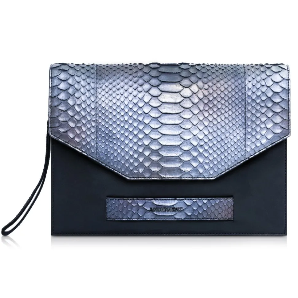 Ammoment – Python in Calcite Grey – Leather Pete Clutch Bag – Avvenice