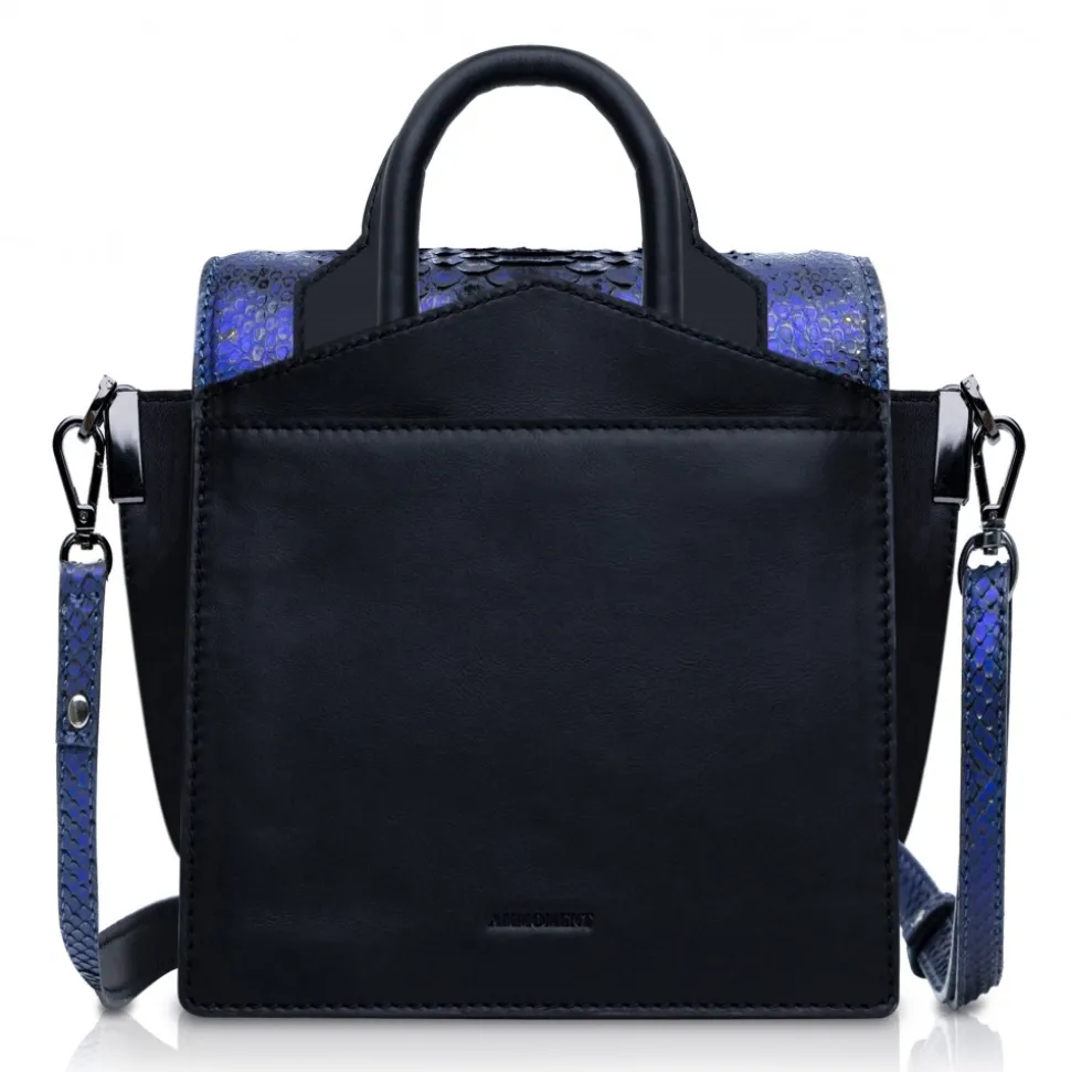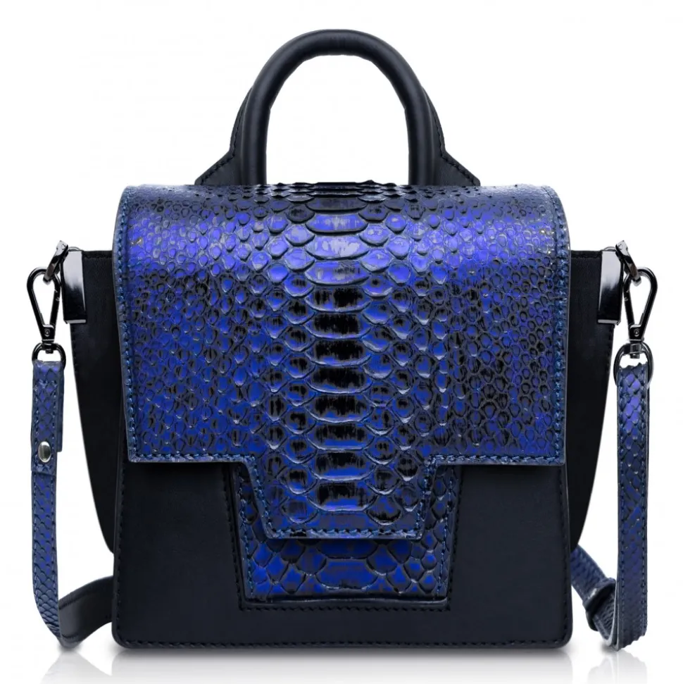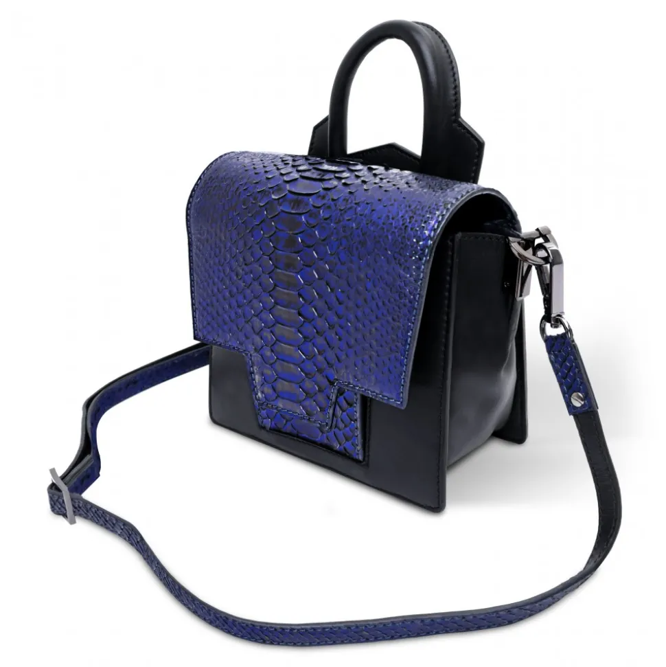 Handmade leather Lexi crossbody bag in python and cowhide leather lining made in Italy.