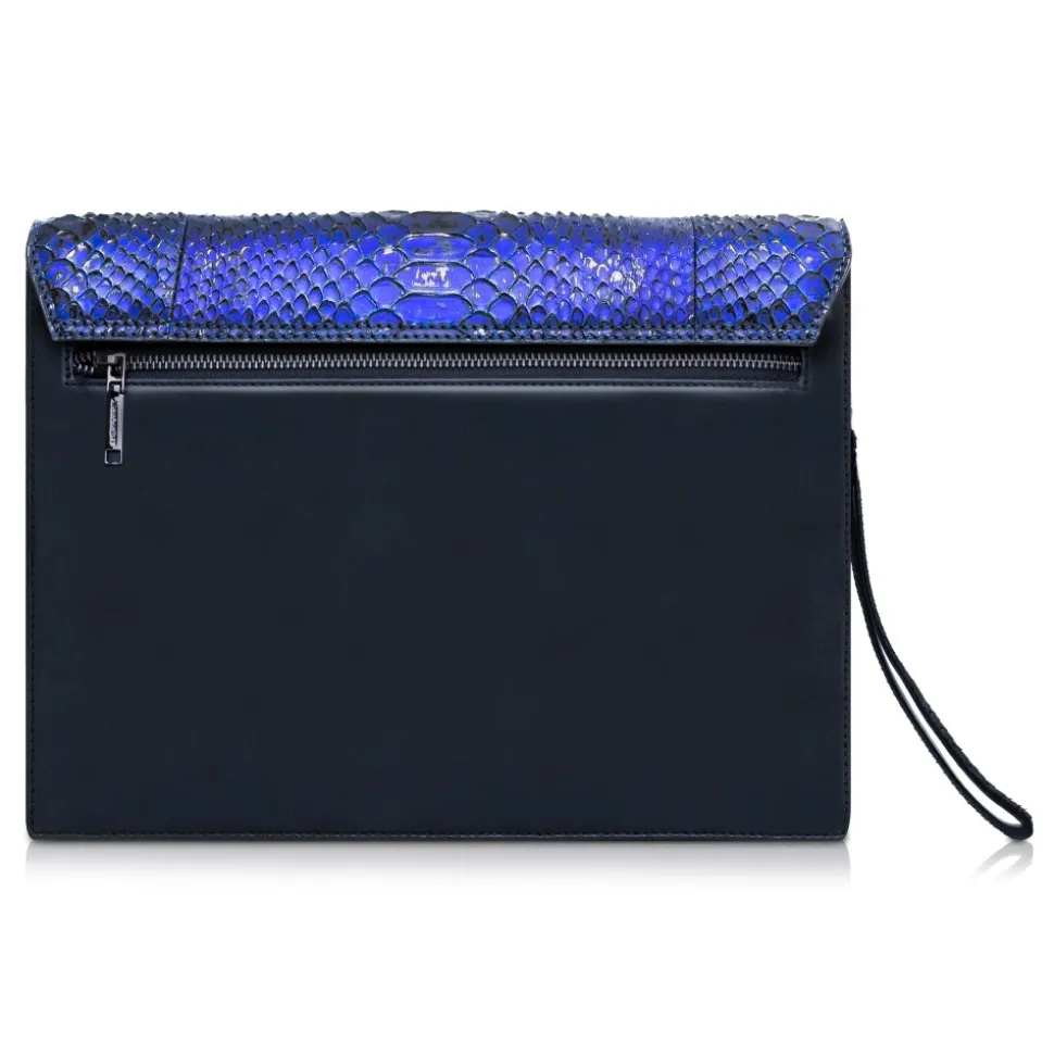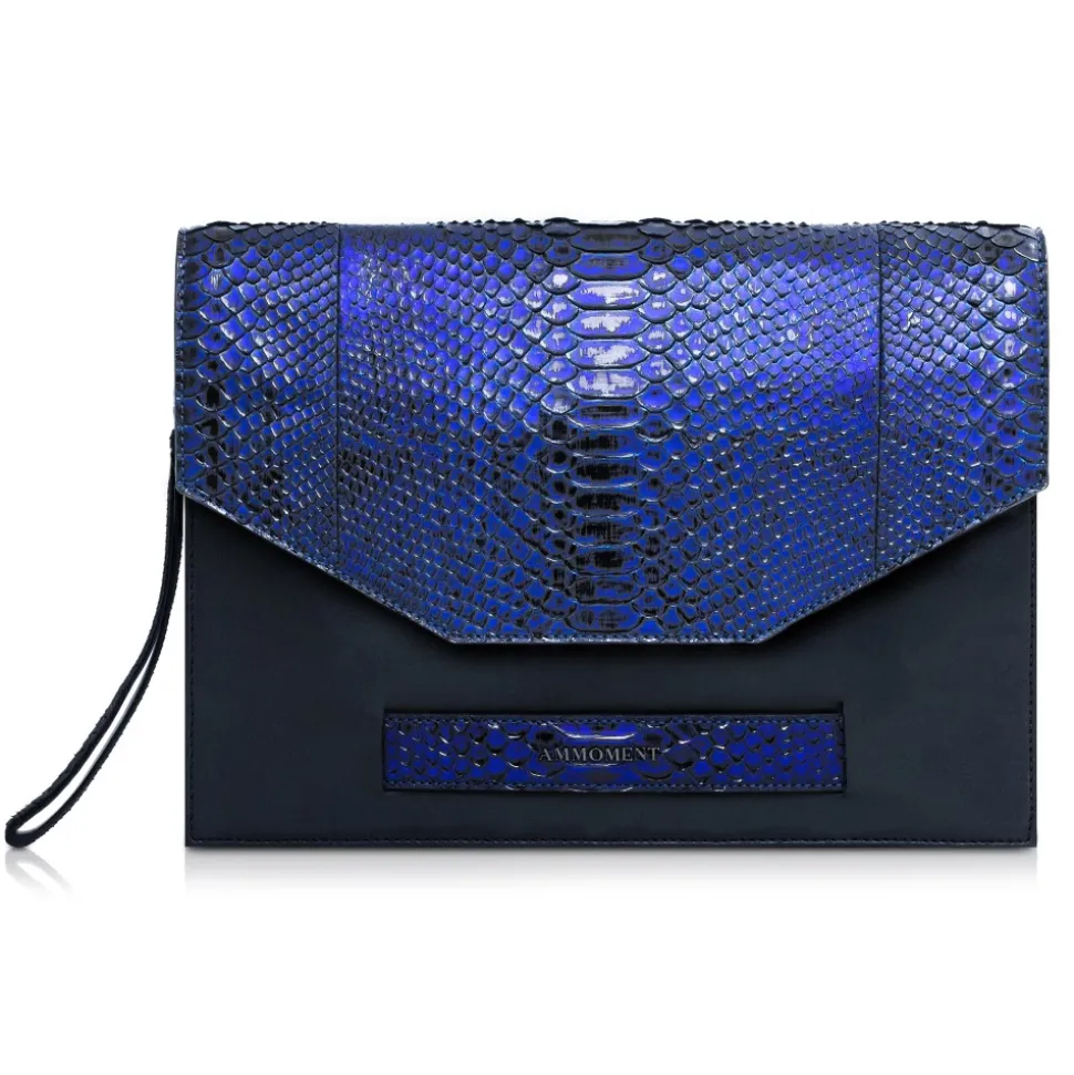 Ammoment – Python in NYX Blue – Leather Pete Clutch Bag – Avvenice