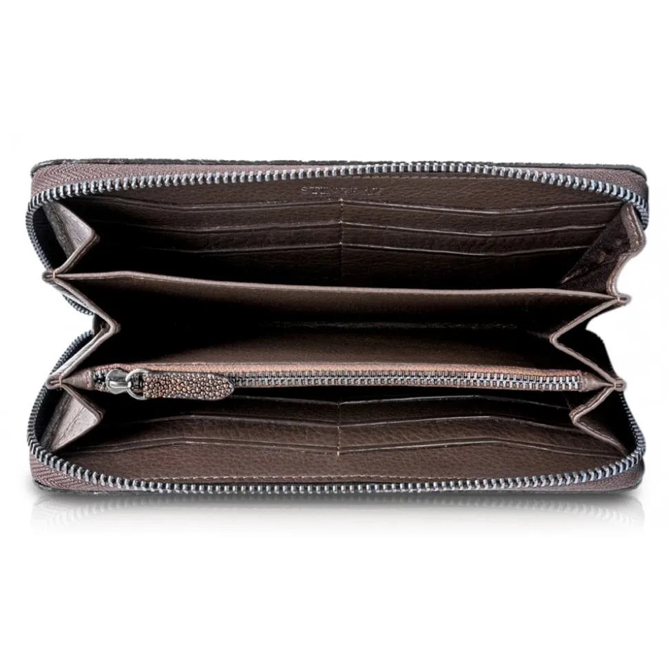 Handmade long zipper wallet in stingray and cowhide leather lining made in Italy.