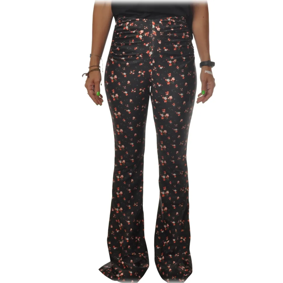 Aniye By – Floral Patterned Flared Pant – Black – Pants – Made in Italy – Luxury Exclusive Collection