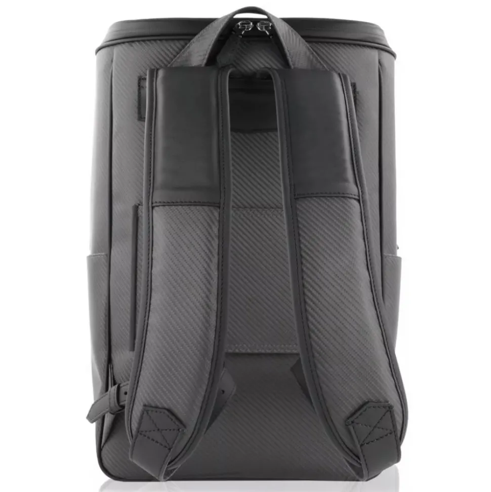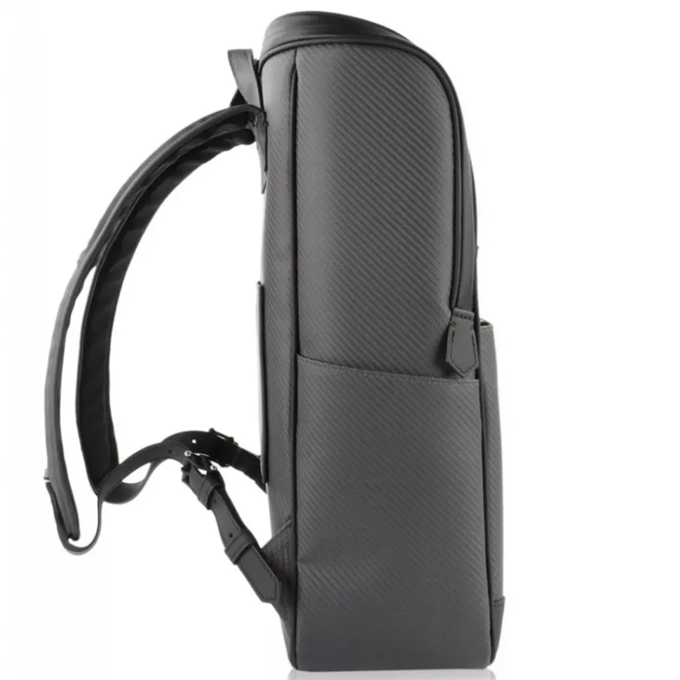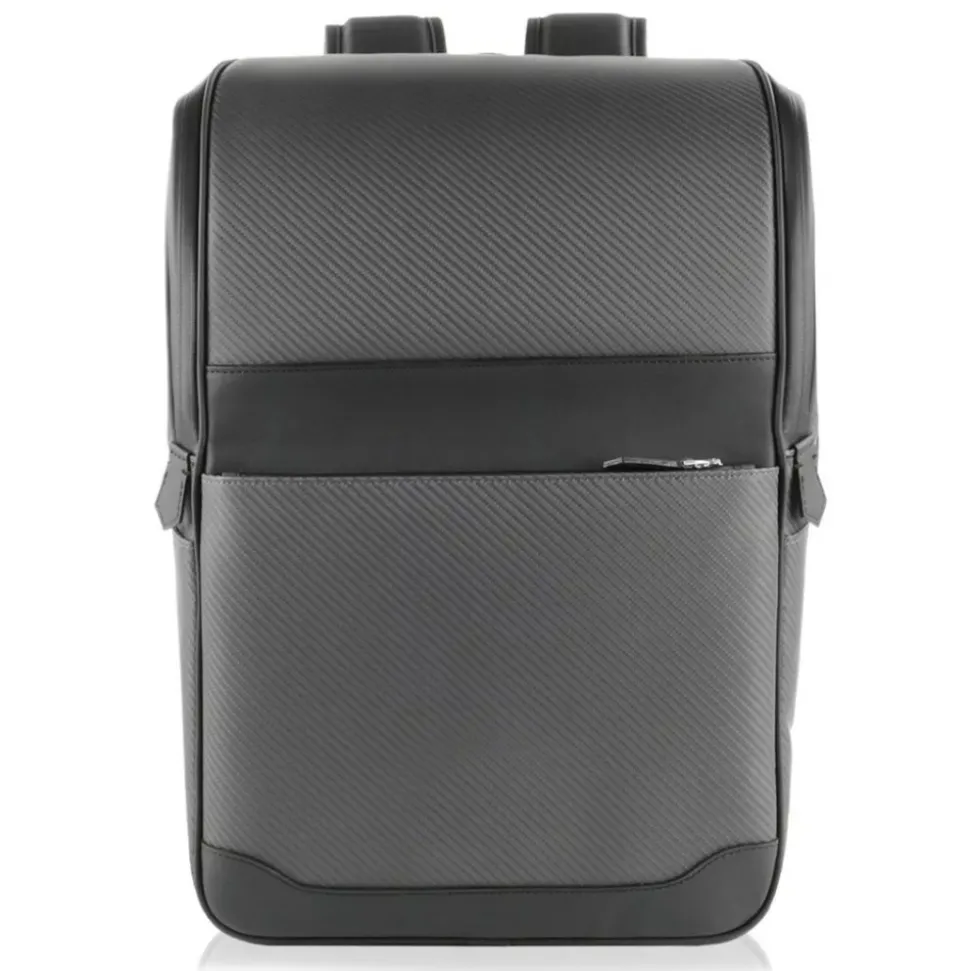 Avvenice Advance Backpack in carbon fiber and caved leather. Perfect for those looking for elegance and practicality, the Advance backpack in soft carbon fiber wonderfully combines style and versatility. The model features unique distinctive details and a front pocket with a water resistant closure.