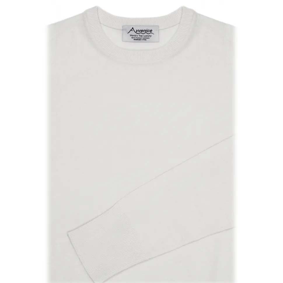 Avvenice – Athus – Man Loro Piana Cashmere Crew Neck Sweater – White – Knitwear – Luxury Exclusive Collection