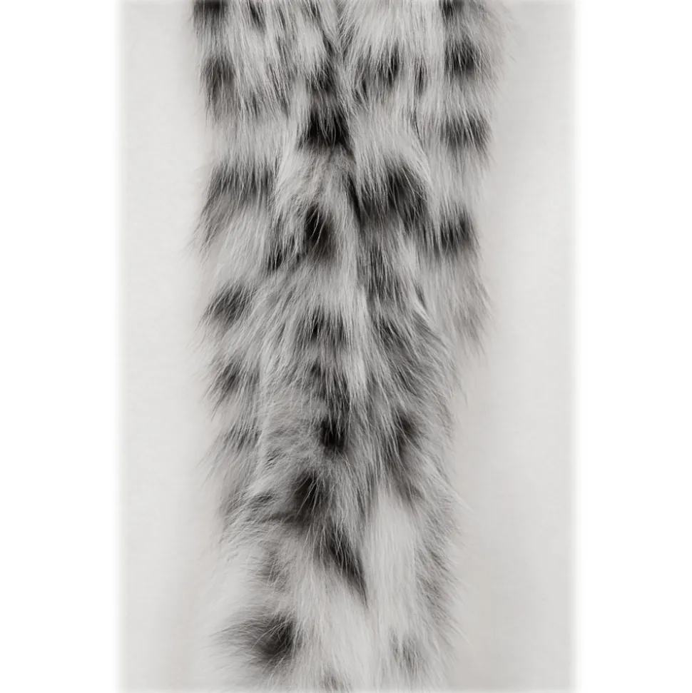 The Leila cape, made of fine cashmere and canadian lynx, embodies elegance and versatility. 85 cm long, with linear design for a sophisticated style. The canadian lynx fur gives a touch of luxury to the collar, while the Loro Piana cashmere fabric ensures maximum quality and comfort.