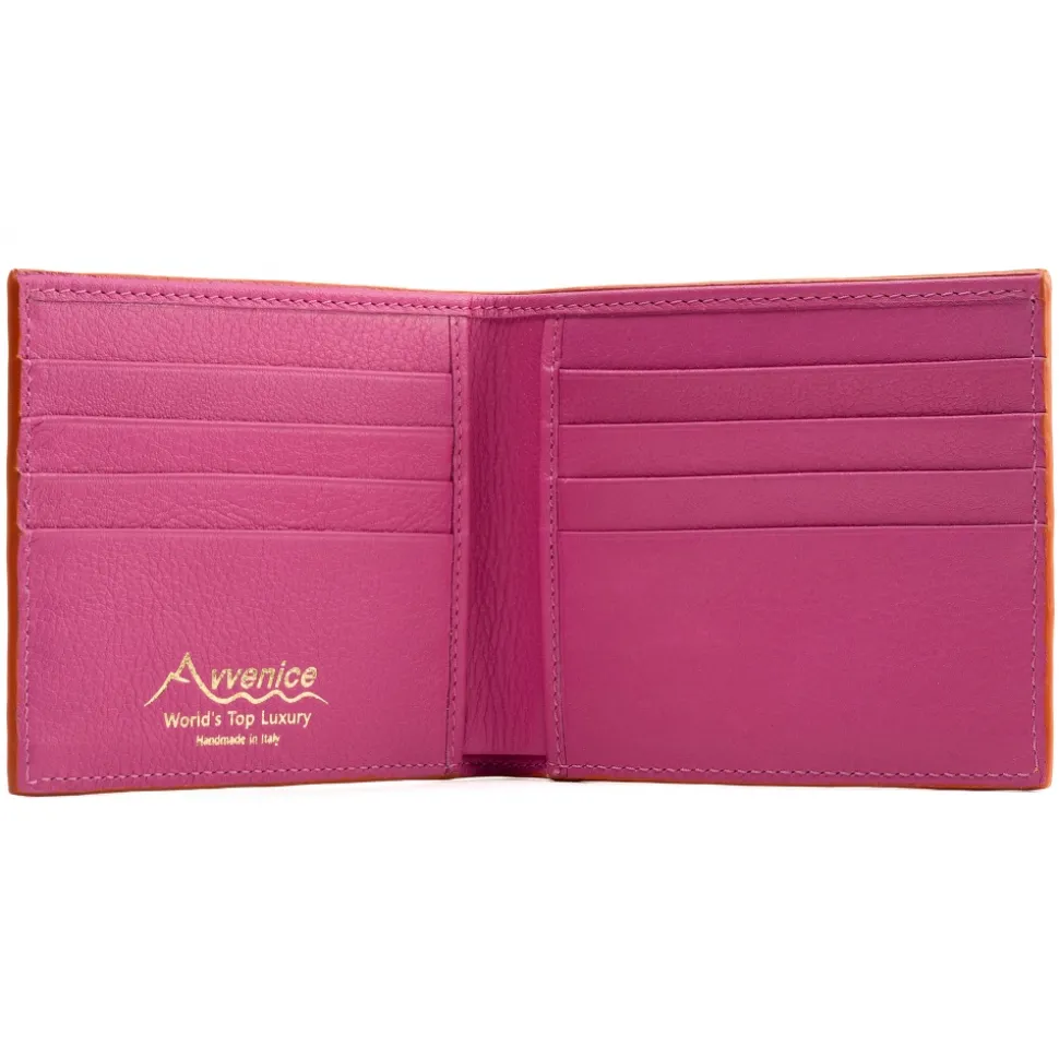 Avvenice –Â Premium Leather Wallet –Â Orange Fuchsia – Handmade in Italy – Exclusive Luxury Collection