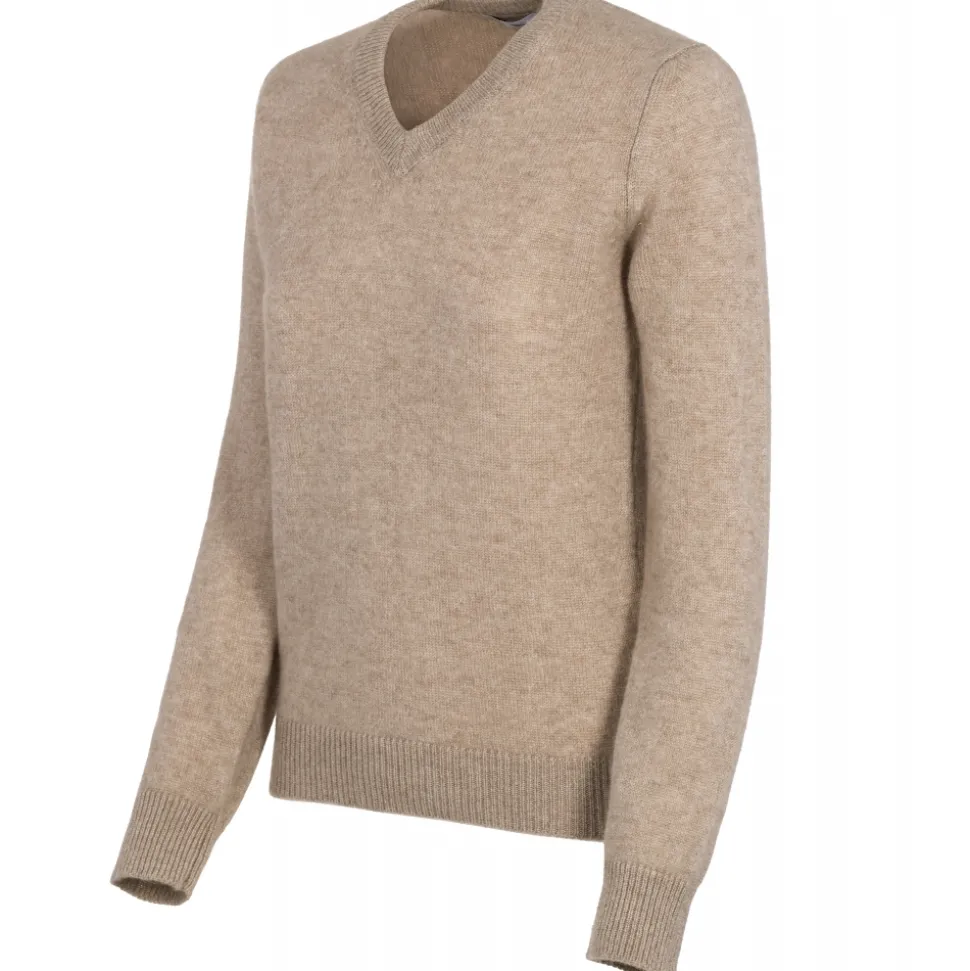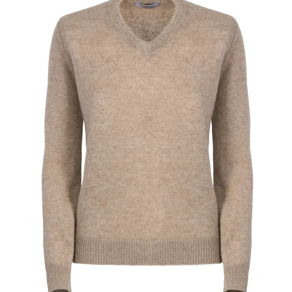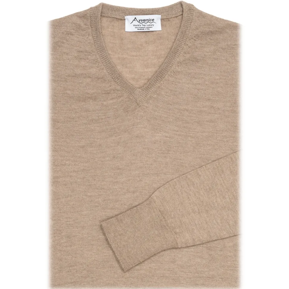 Avvenice – Theria – Woman Loro Piana Cashmere V-Neck Sweater – Tundra – Knitwear – Luxury Exclusive Collection