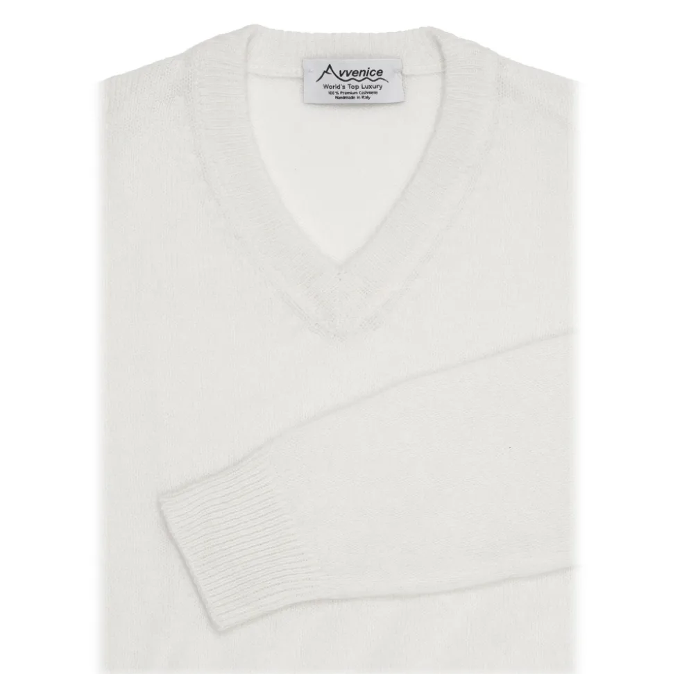 Avvenice – Theria – Woman Loro Piana Cashmere V-Neck Sweater – White – Knitwear – Luxury Exclusive Collection