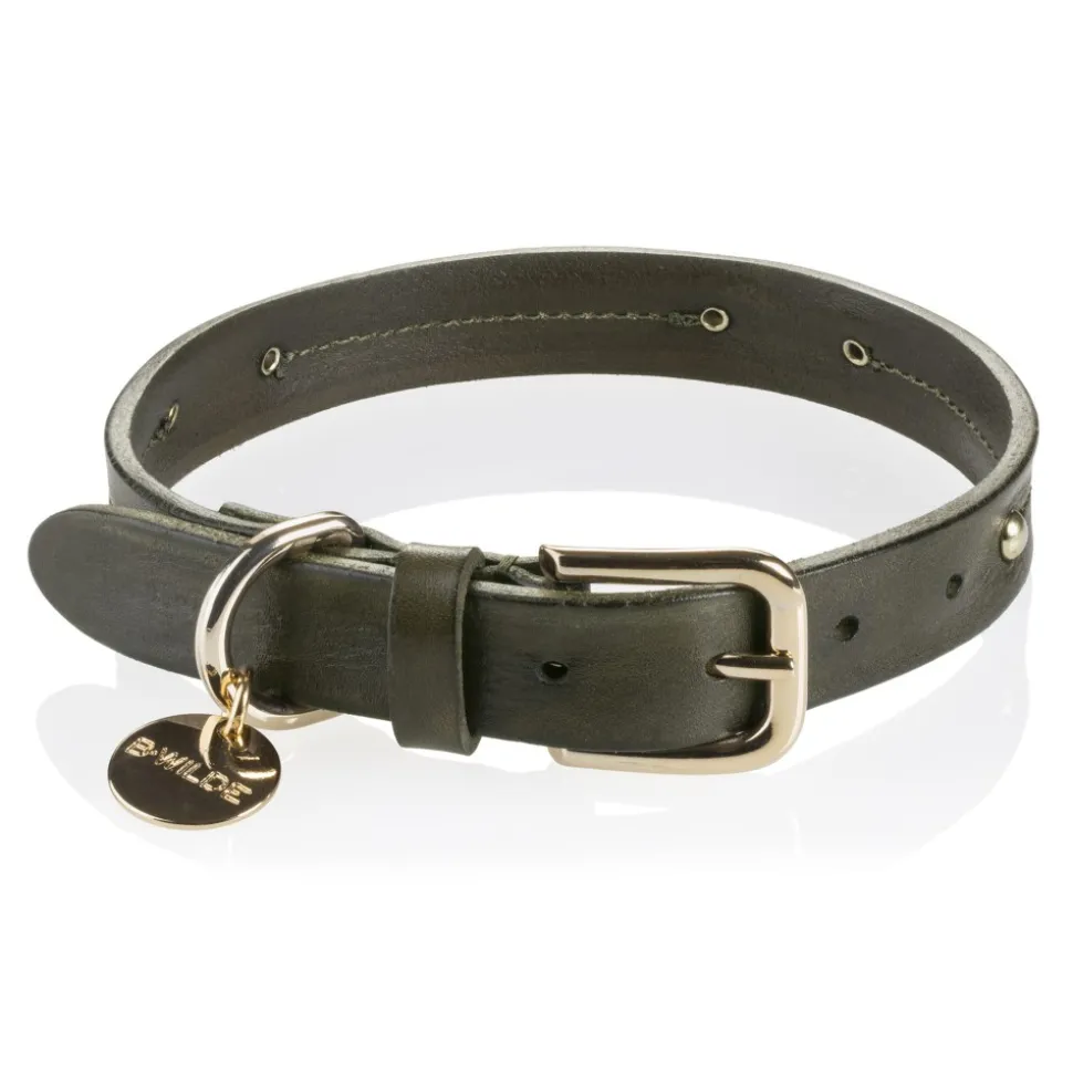 MILO Collar | Composition: Genuine leather decorated with studs. B.WILDE name tag. Personalised on request. Silver or antique gold hardware.