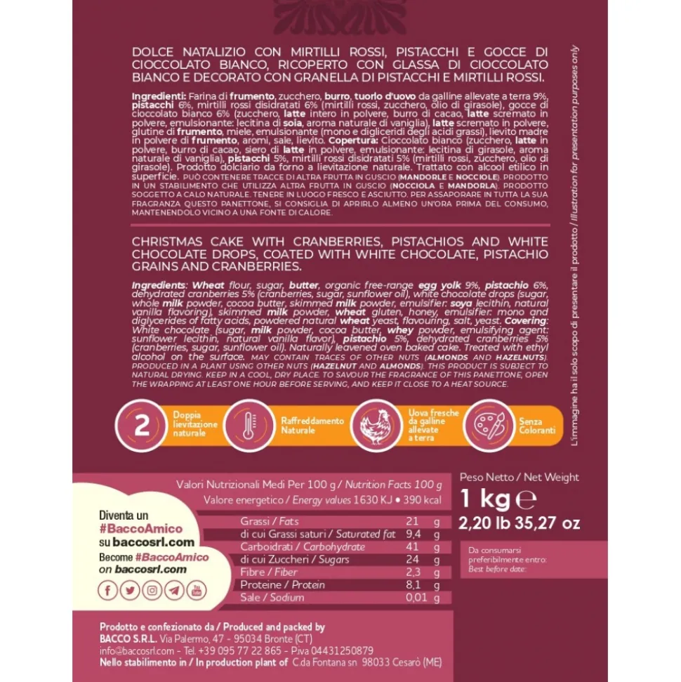 Bacco – Tipicità al Pistacchio – New Elite Line – PanBacco Elitè with Cranberries and Pistachio – Artisan Panettone – 1000 g