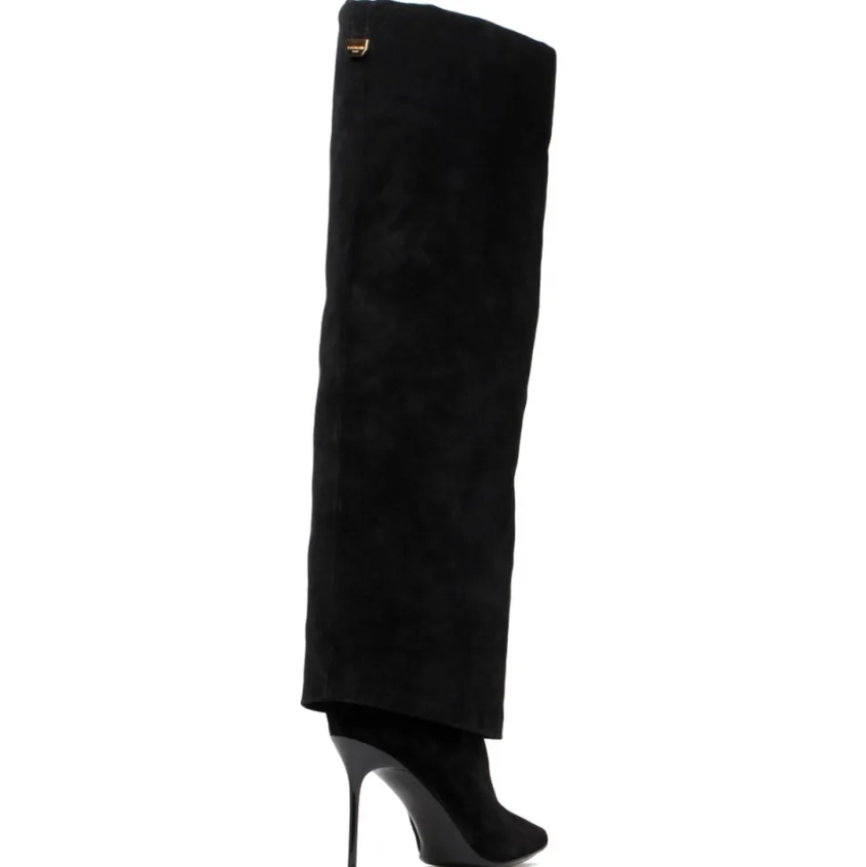Balmain Black Ariel Boots. Black leather boots, pointed toe, slip on style, 120 mm high heel, leather sole.