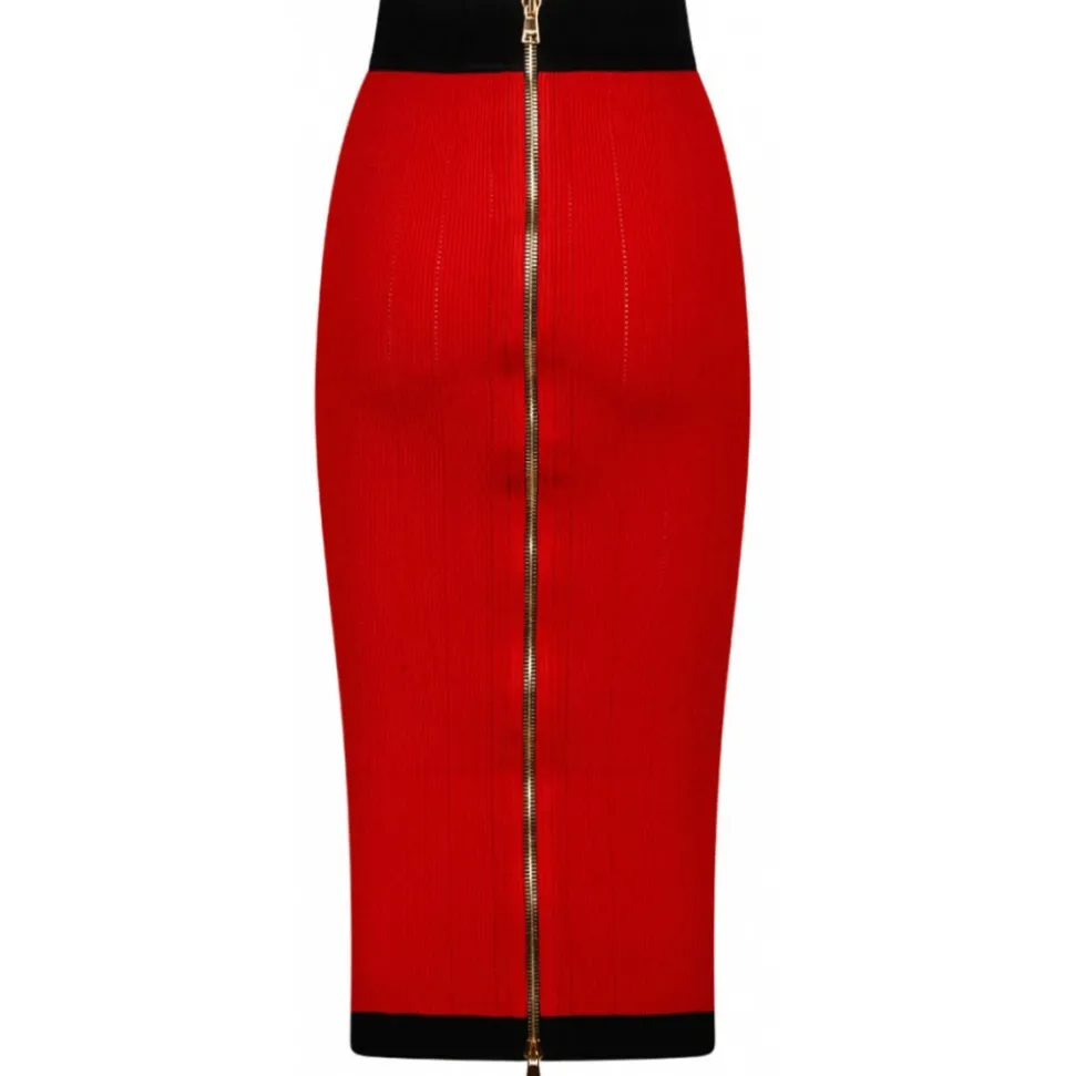 Balmain – Buttoned Knit Midi Skirt – Red Black – Balmain Exclusive Luxury Collection