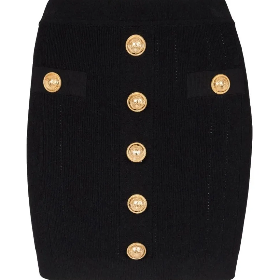 Balmain – Buttoned Knit Short Skirt – Black – Balmain Exclusive Luxury Collection