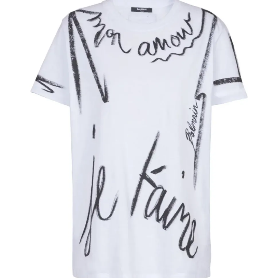 Balmain – SL Writing Printed T-Shirt – White – Balmain Exclusive Luxury Collection