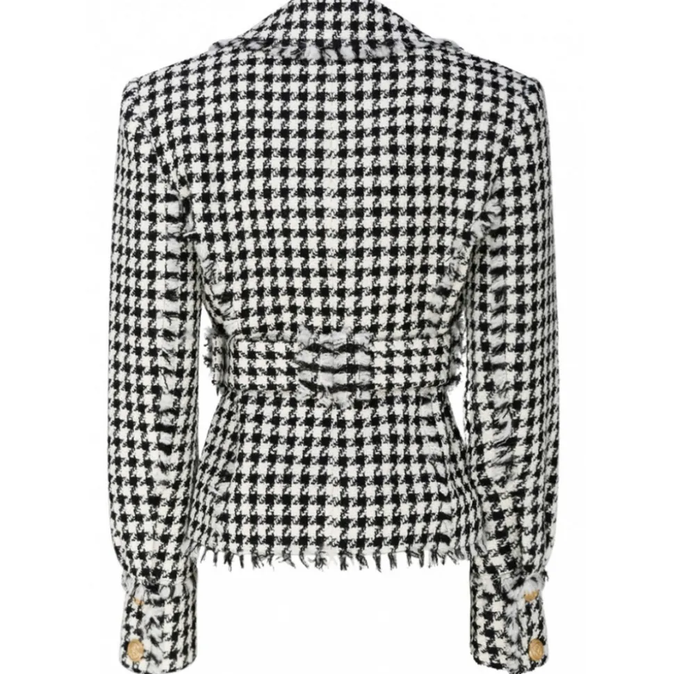 Balmain – Virgin Wool Tweed Belted Jacket – Black White – Balmain Exclusive Luxury Collection