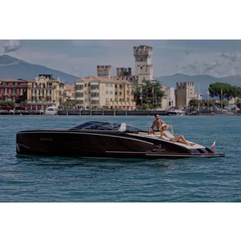 Captain Virgilio, one of the characters who will forever remain imprinted in the history of Bertoldi Boats and the Bertoldi family. Virgilio, in fact, was the name of one of the founding fathers of the company: this hull is in honor of him and represents his elegance. Virgilio is the exclusive sports motorboat that stands out for its refinement and unmistakable design capable of harmonizing modern materials and handcrafted finishes. A luxury motorboat with great personality, charm and a spirited soul at the same time. The elegance, sinuous lines and compactness of Virgilio make it the ideal motorboat if you are looking for a special motorboat to live a unique experience on Lake Garda!