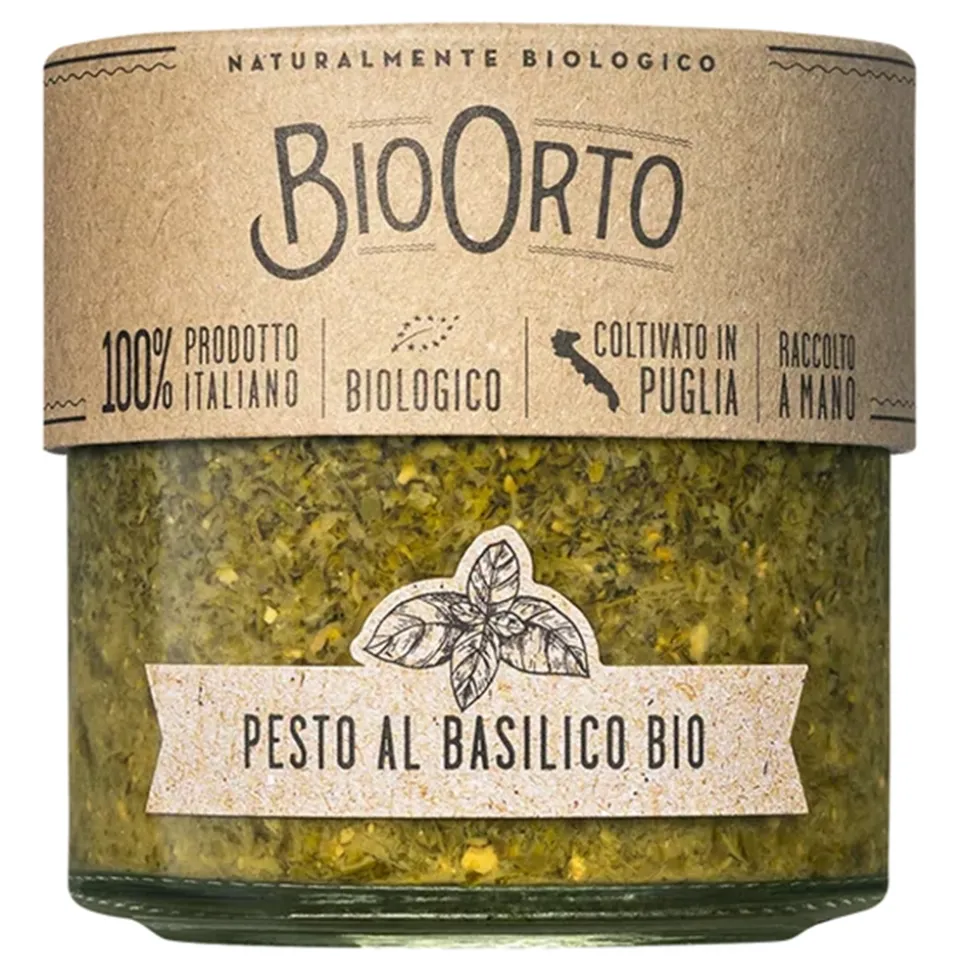 Ready to use and with a genuine flavour, Bio Orto’s organic basil pesto, in versions with or without garlic, is a high quality product that enhances and keeps intact the organoleptic properties of the ingredients used thanks to a cold working process which enhances its flavors and aromas.