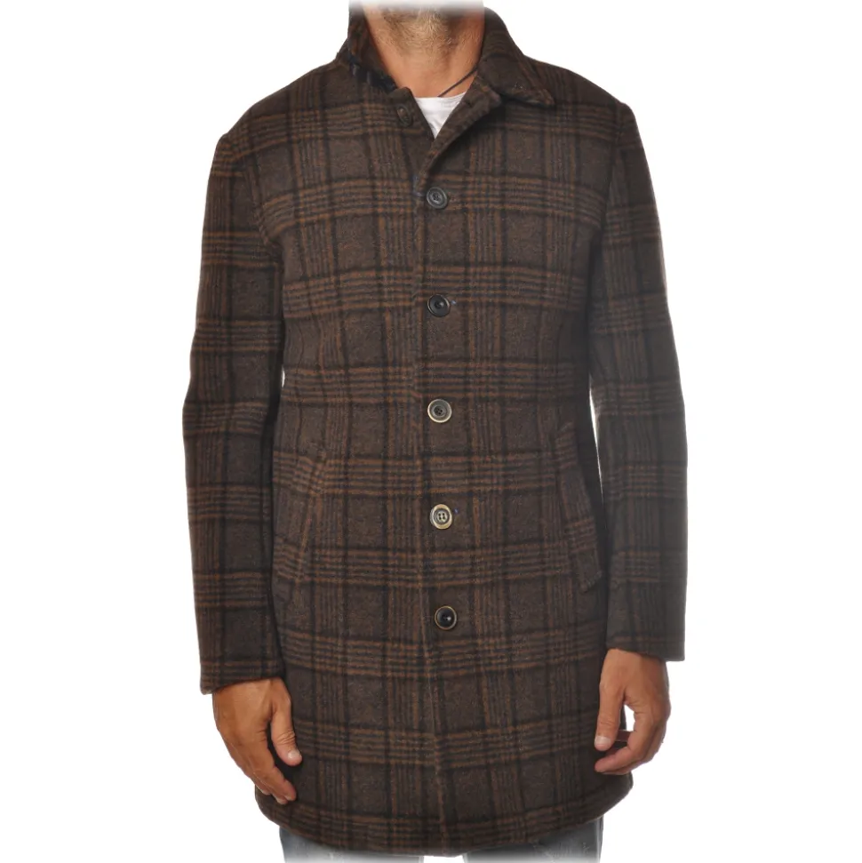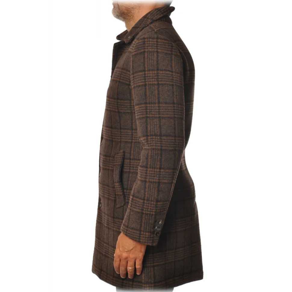 BoB Company – 3/4 Coat in Checked Pattern – Brown – Jacket – Made in Italy – Luxury Exclusive Collection