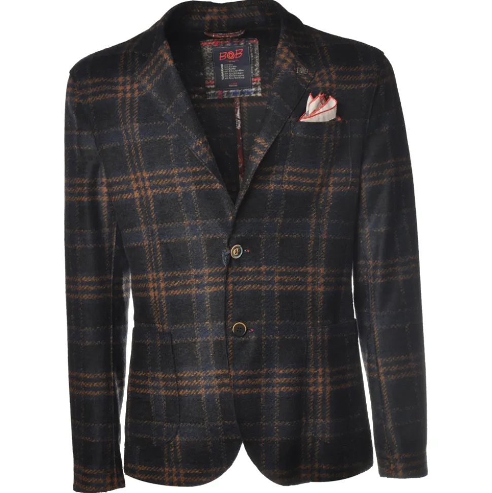 BoB Company – Single-Breasted Jacket in Checked Pattern – Blue – Jacket – Made in Italy – Luxury Exclusive Collection