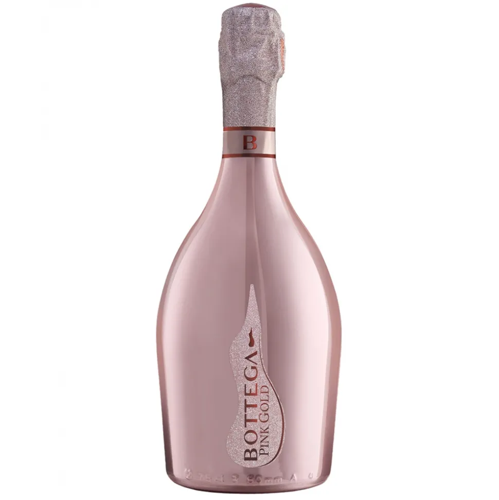 Bottega Pink Gold Prosecco Doc Rosé is a sparkling Prosecco rosato Brut that originates from a blend of Glera and Pinot Noir grapes grown in the Prosecco DOC area according to classic and traditional techniques and which have maintained their quality unchanged over the years and the typicality. It is also characterized by the bottle with its unmistakable livery, made with an exclusive metallization process, thanks to which the pink color becomes an integral part of the external surface of the glass.