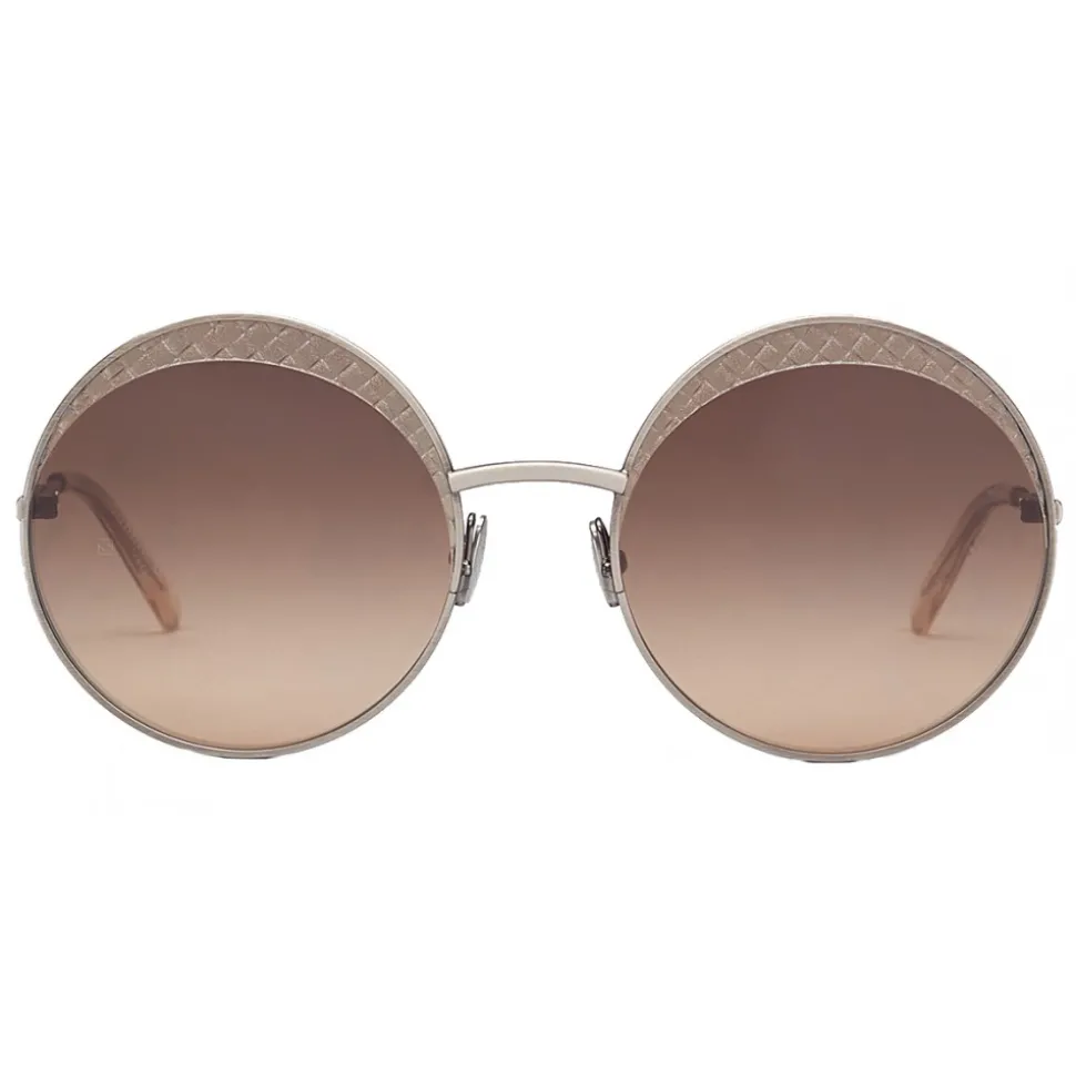 Bottega Veneta – Cross Metal Round Sunglasses – Silver Brown