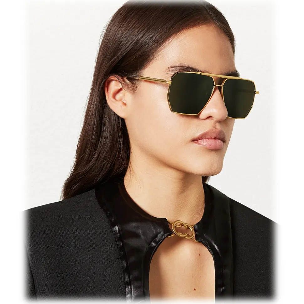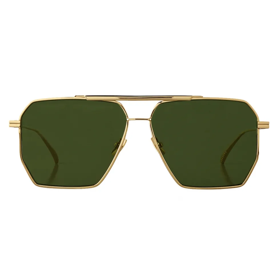 Aviator sunglasses in metal. Geometric lenses. Double deck. Emblematic pattern with stripes on the temples.