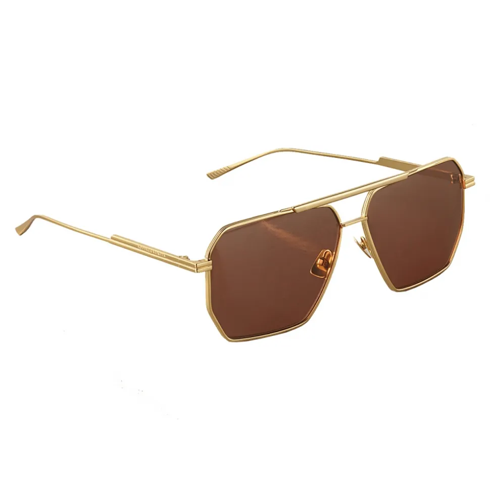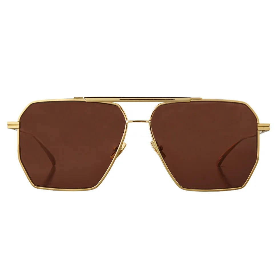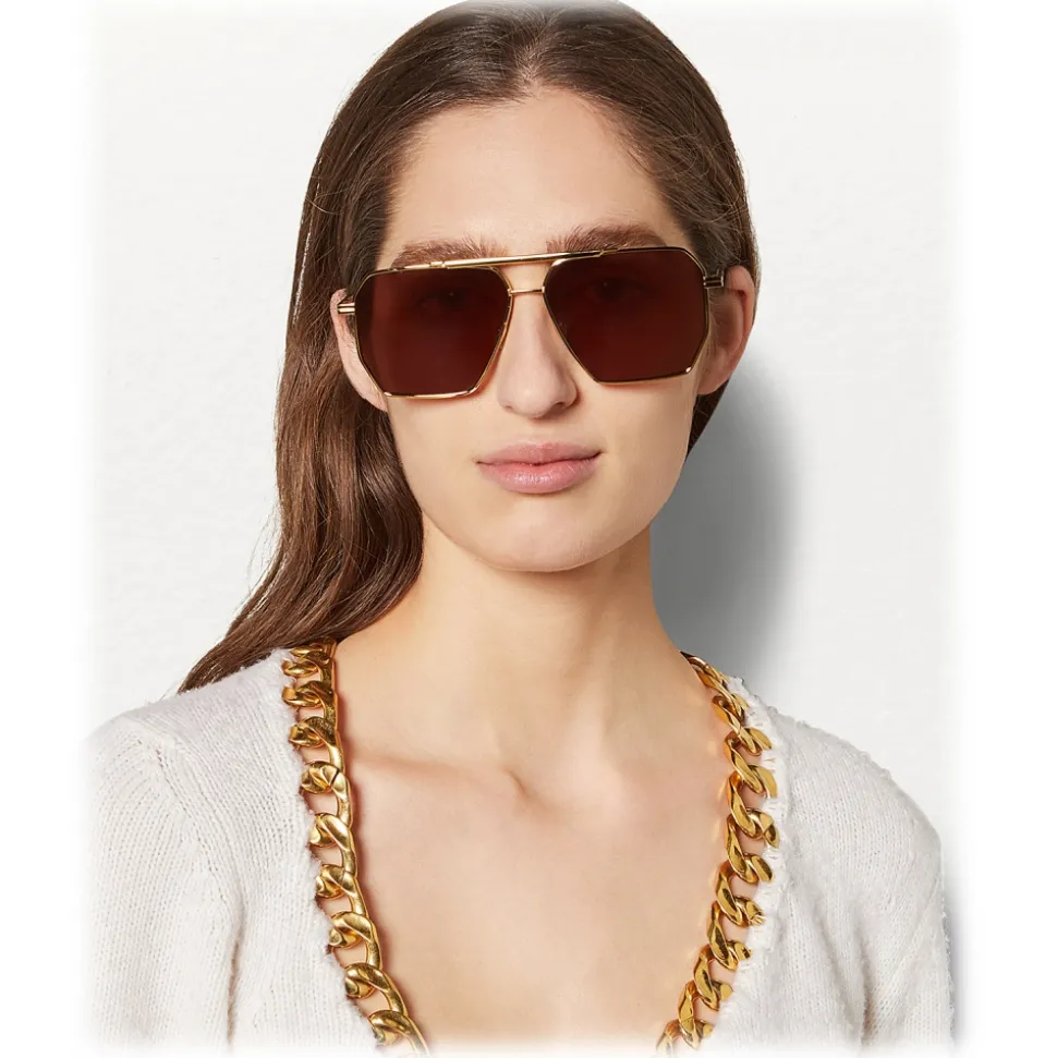 Aviator sunglasses in metal. Geometric lenses. Double deck. Emblematic pattern with stripes on the temples.