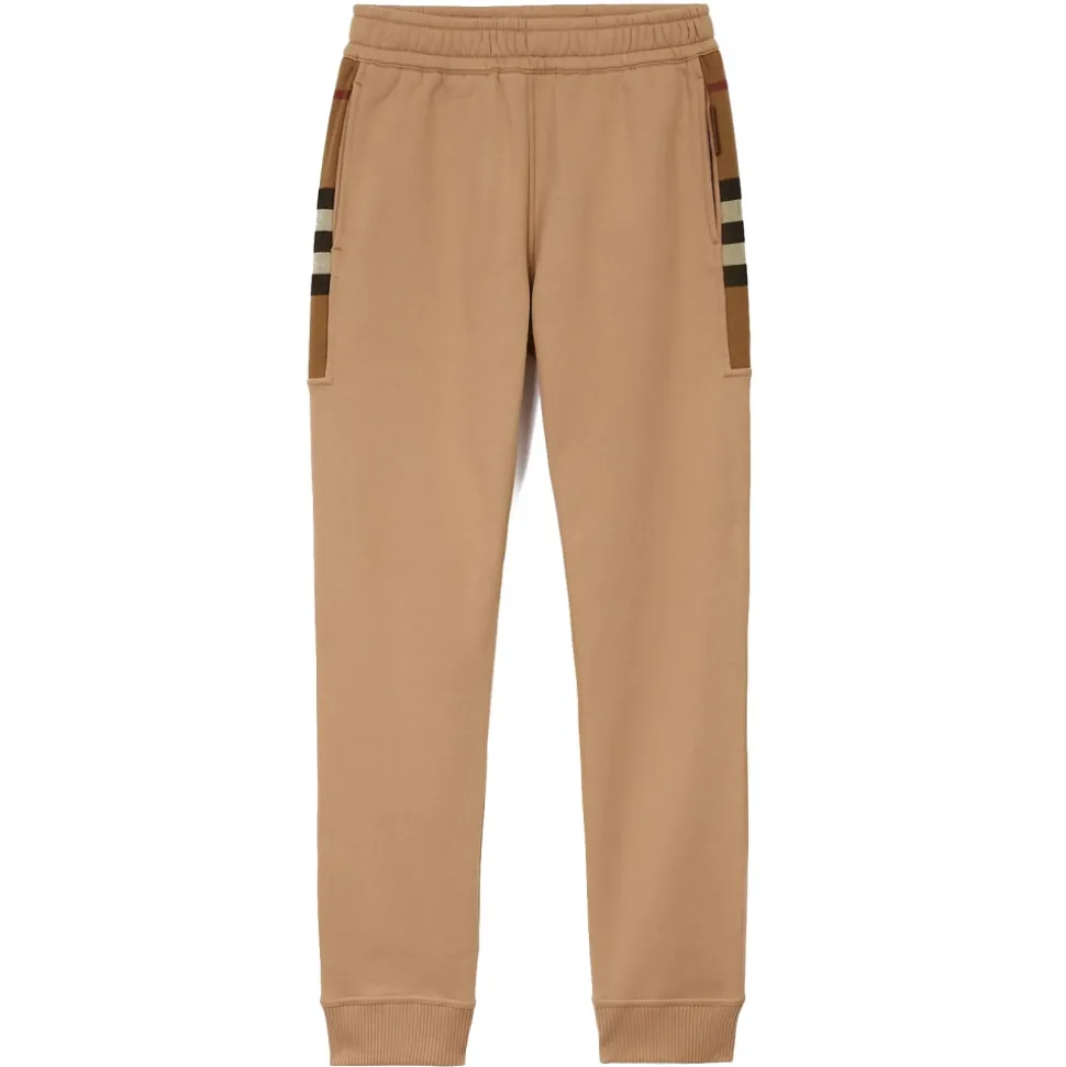 Burberry – Check Panel Cotton Blend Jogging Pants – Camel – Exclusive Burberry Collection