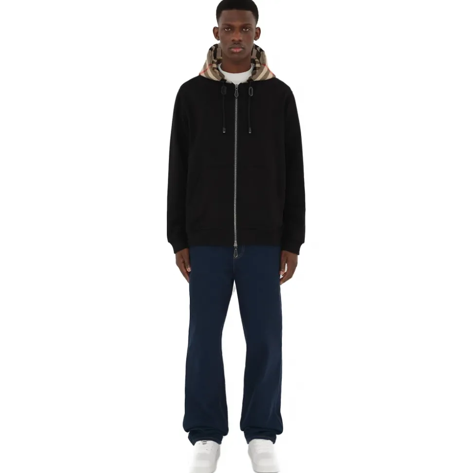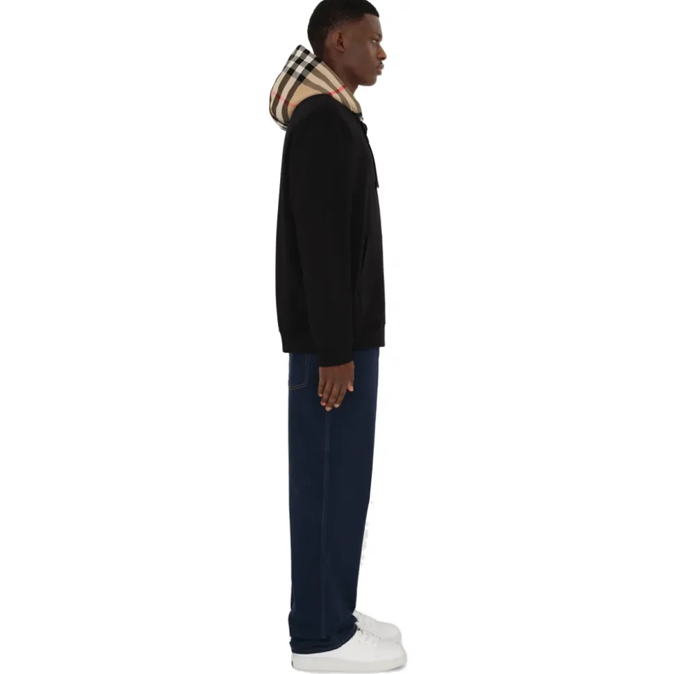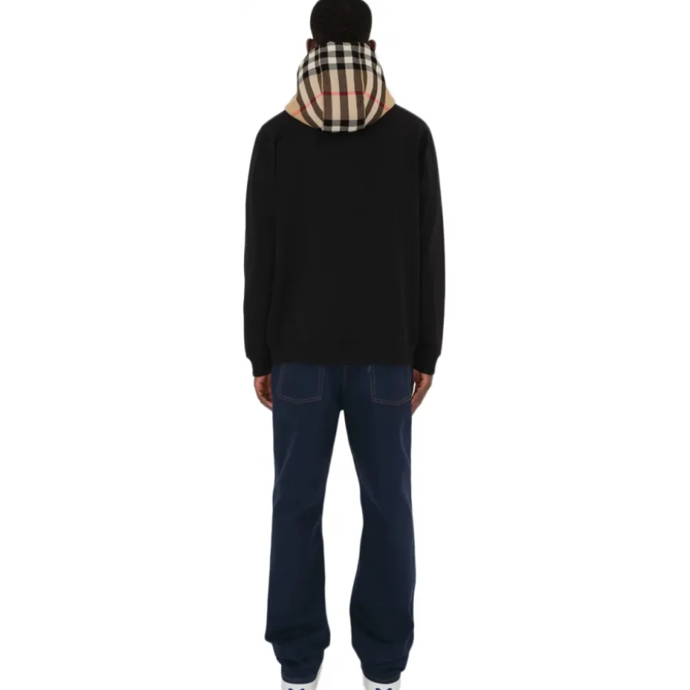 Burberry – Cotton Blend Hooded Sweatshirt with Tartan Pattern – Black / Birch Brown – Exclusive Burberry Collection