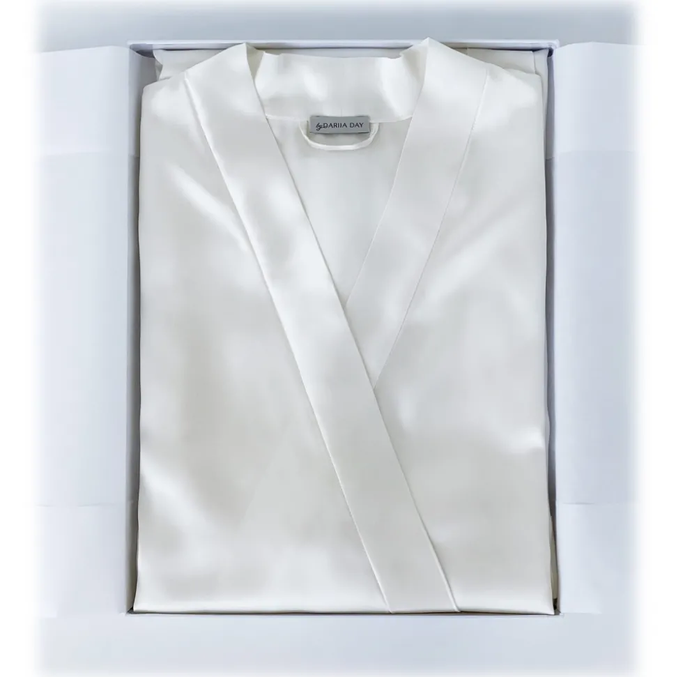 by Dariia Day – Long Silk Robe – Powder White – Fashion – New Collection – Mulberry Silk – Artisan Silk Robe – Luxury