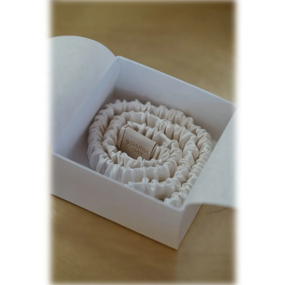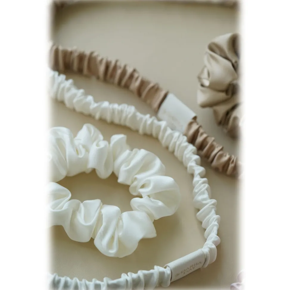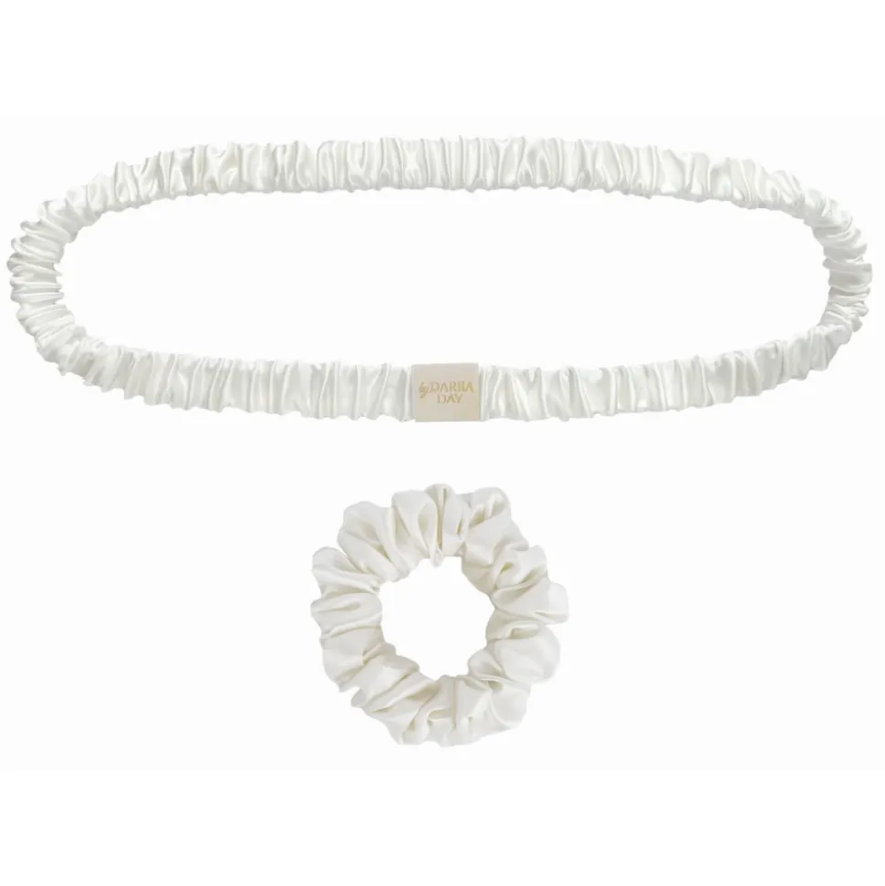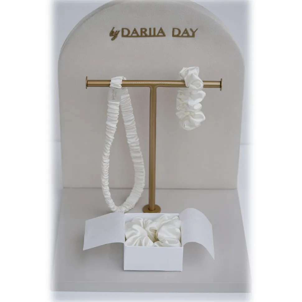 by Dariia Day – Silk Headband and Scrunchie Set – Powder White – Fashion – New Collection – Mulberry Silk – Artisan Silk Headband and Scrunchie – Luxury