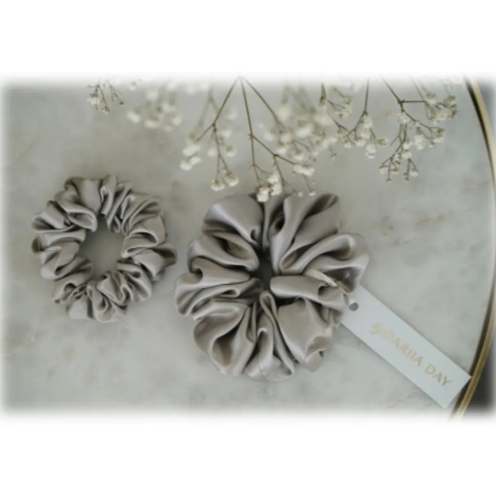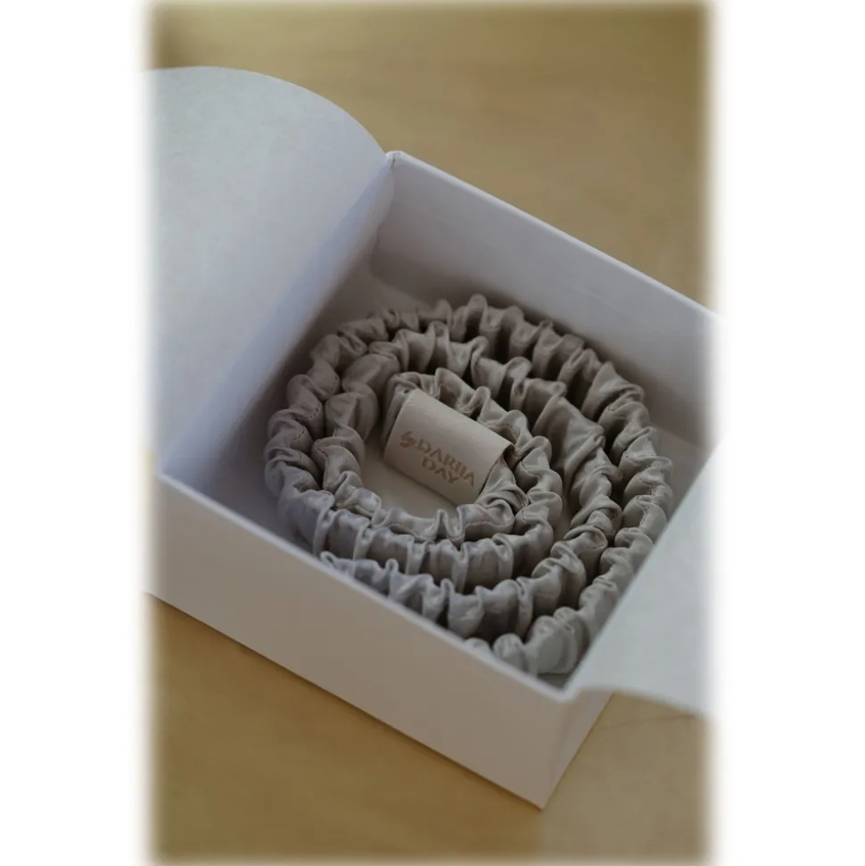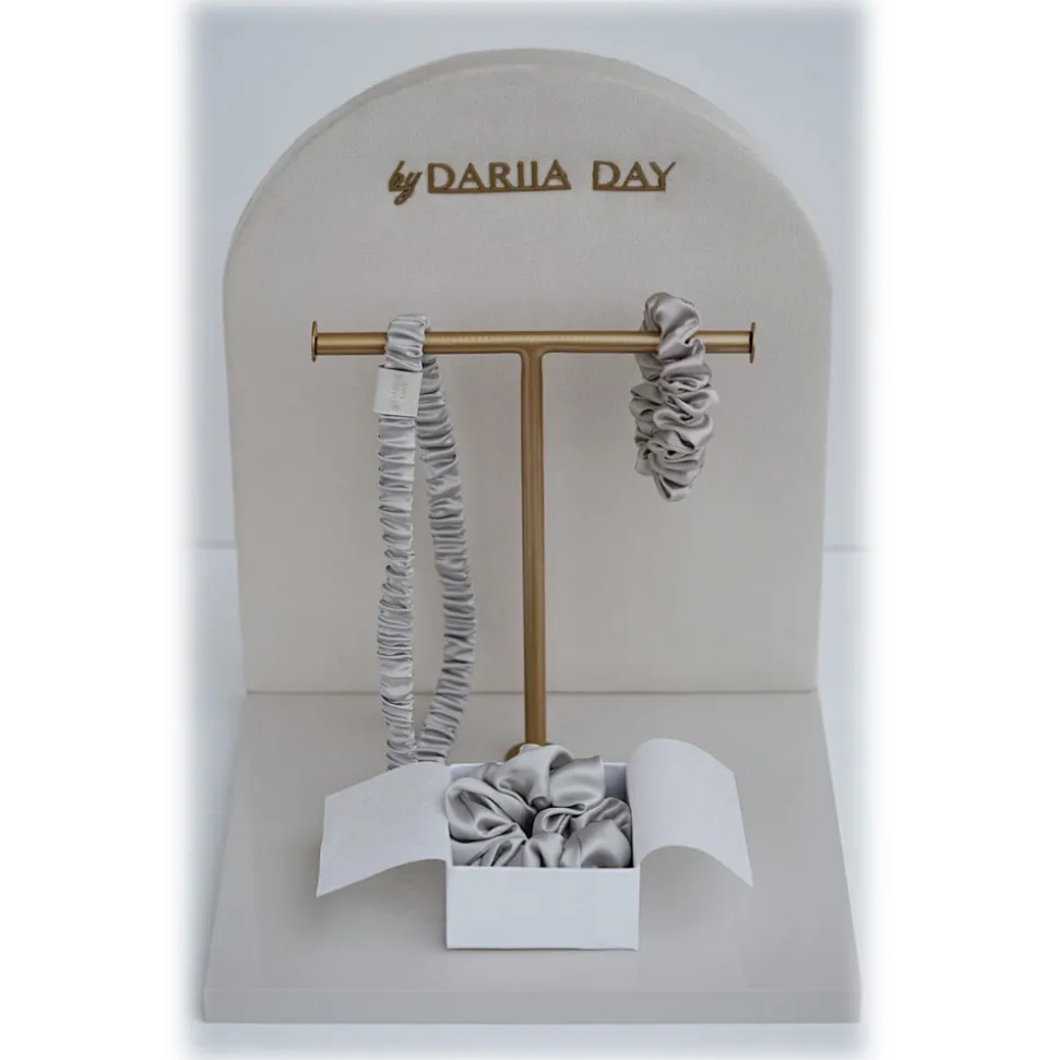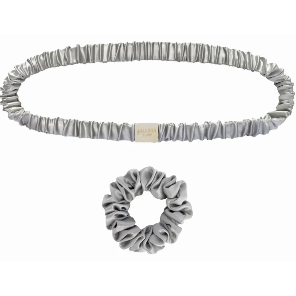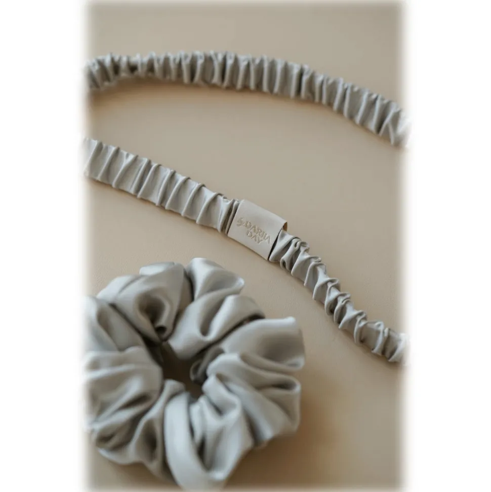 by Dariia Day – Silk Headband and Scrunchie Set – Silver Grey – Fashion – New Collection – Mulberry Silk – Artisan Silk Headband and Scrunchie – Luxury