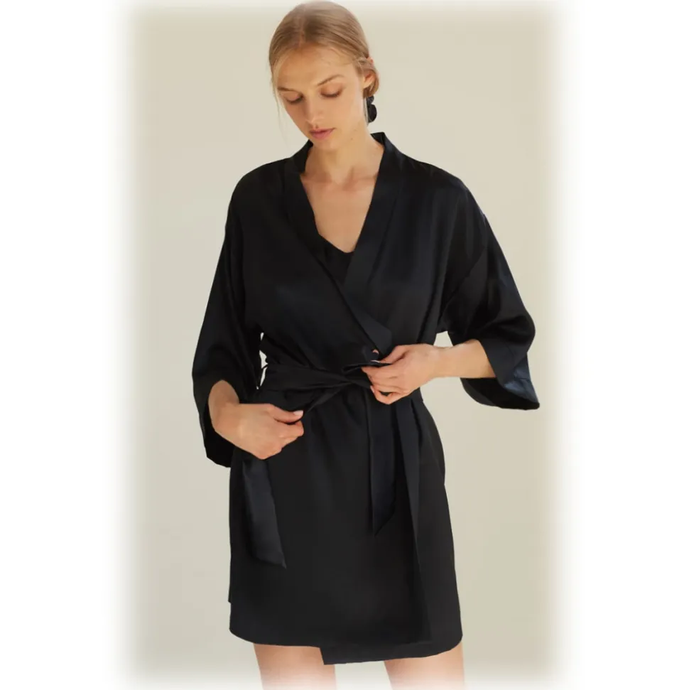 by Dariia Day – Silk Robe – Black Midnight – Fashion – New Collection – Mulberry Silk – Artisan Silk Robe – Luxury